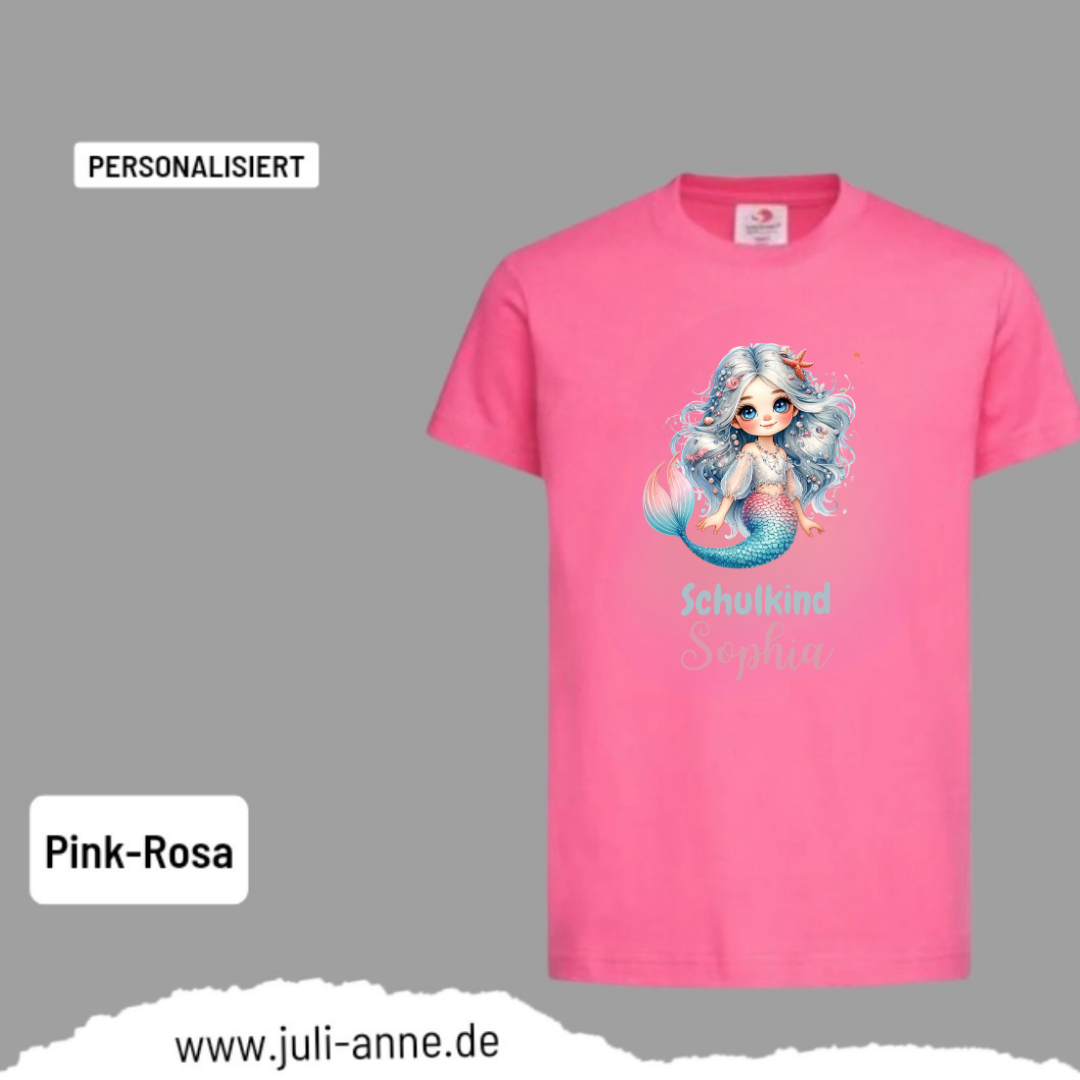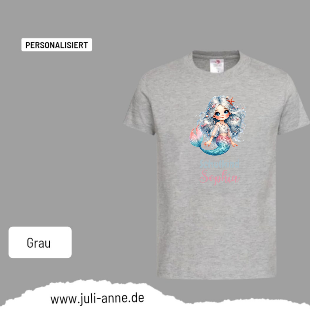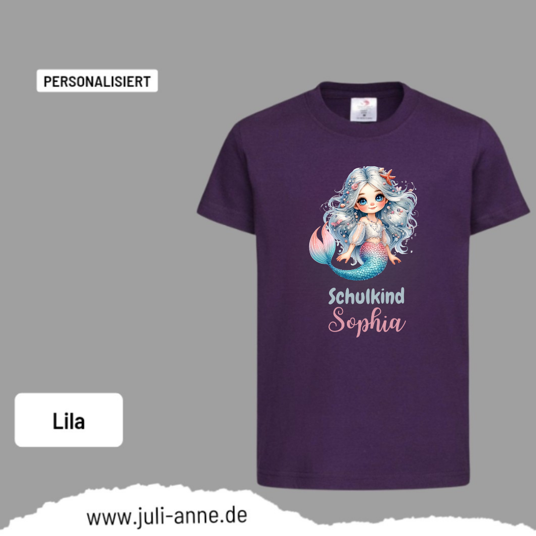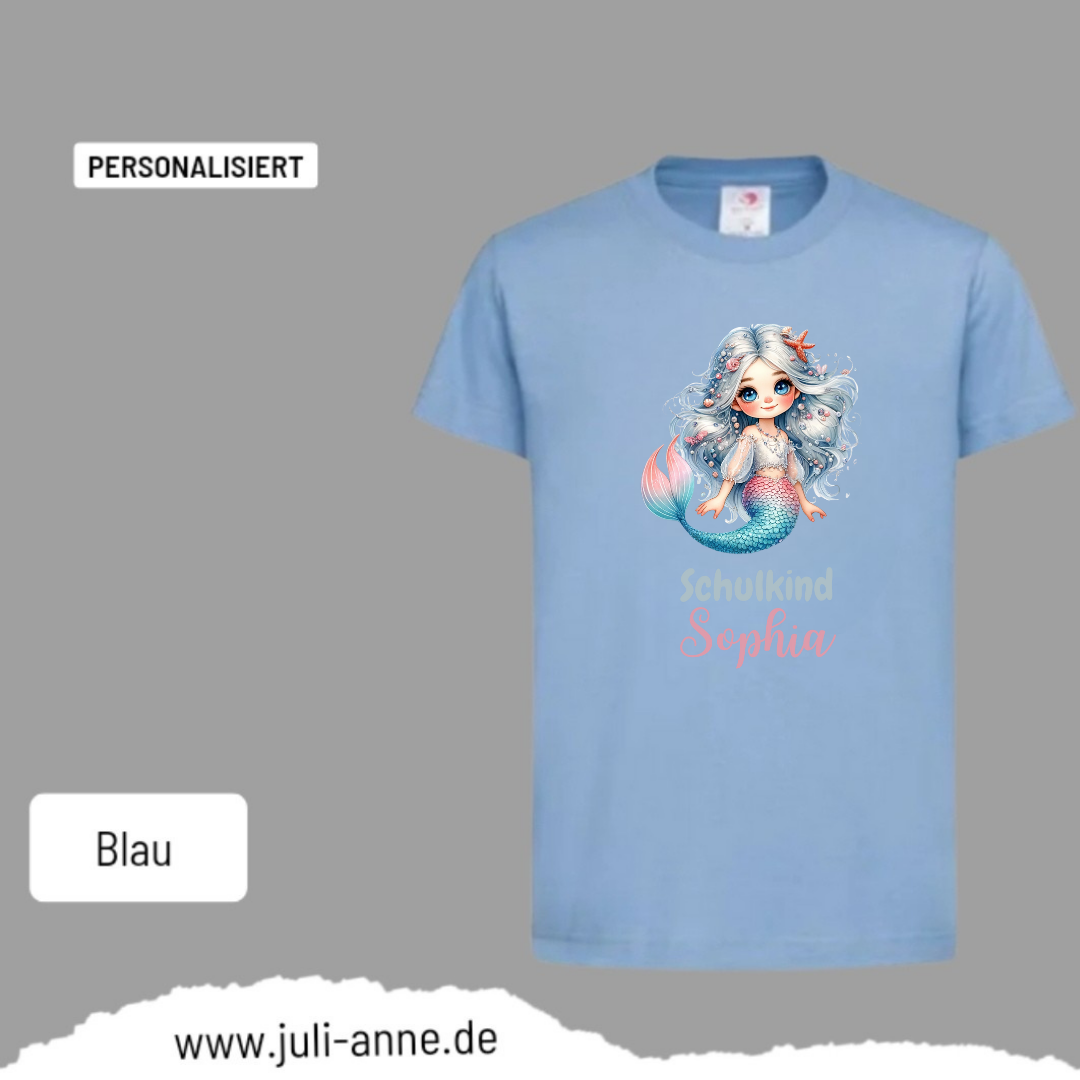 Kinder Basic-Shirt SCHULKIND personalisiert Zahl Name MERMAID CUTIE 3
