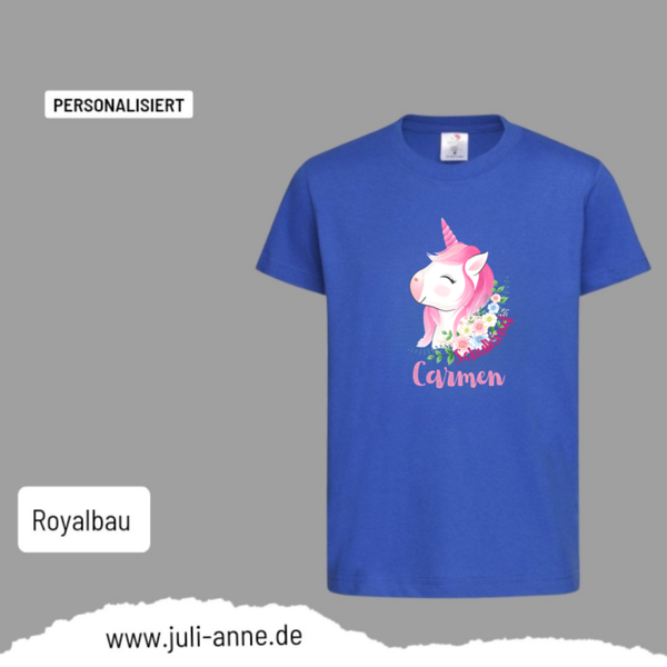 Kinder Basic-Shirt SCHULKIND personalisiert Zahl Name Einhorn Pink