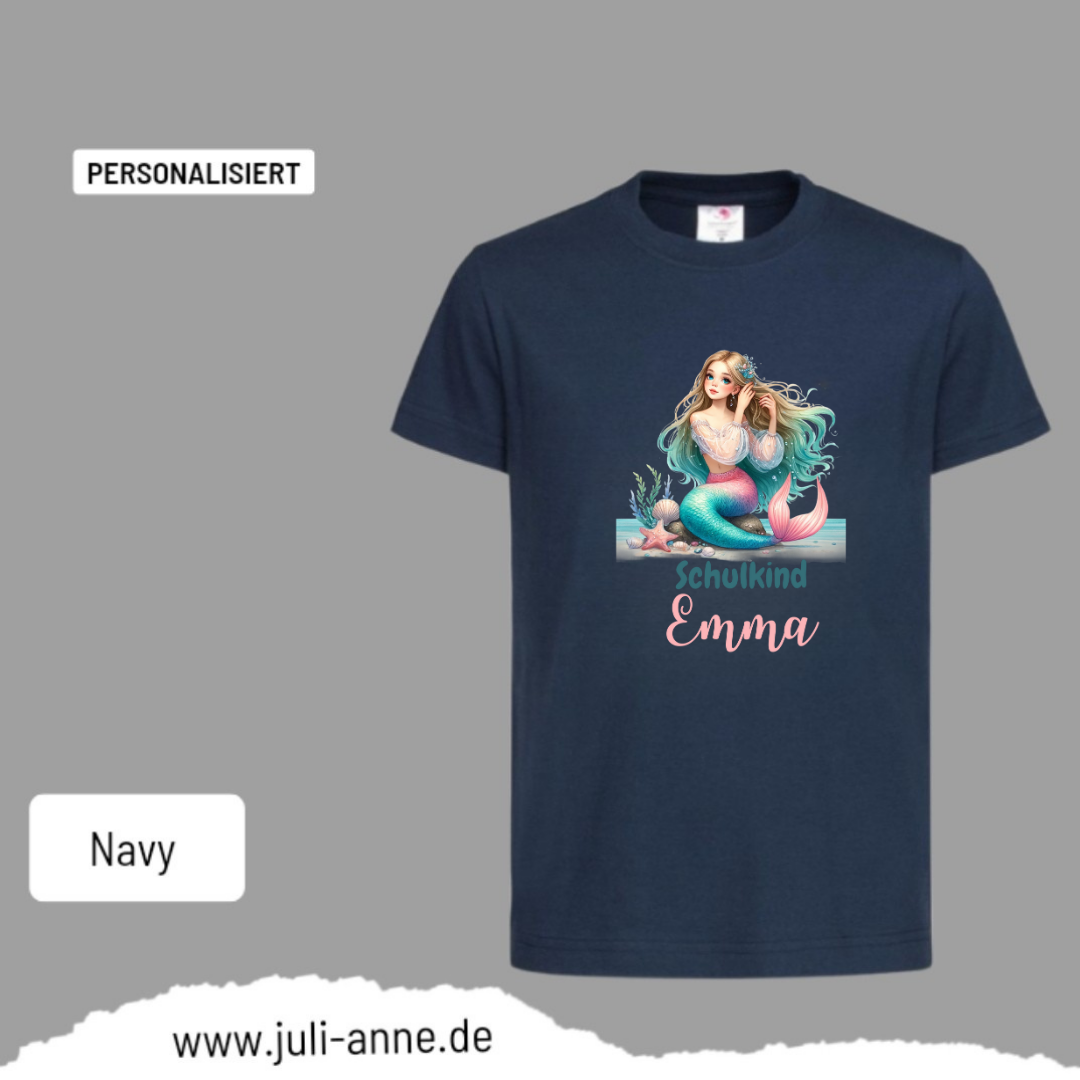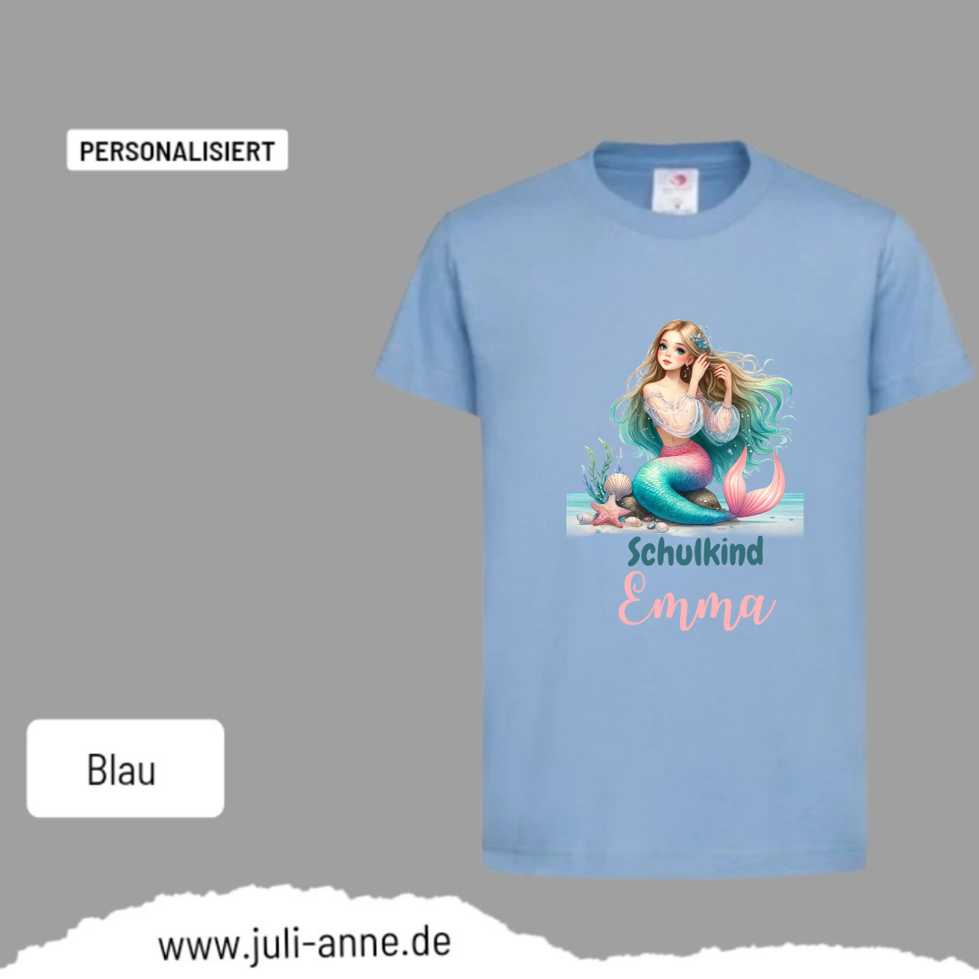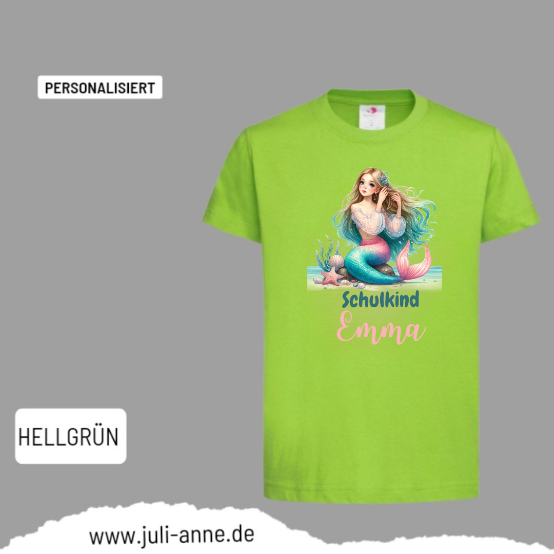 Kinder Basic-Shirt SCHULKIND personalisiert Zahl Name MERMAID CUTIE 5