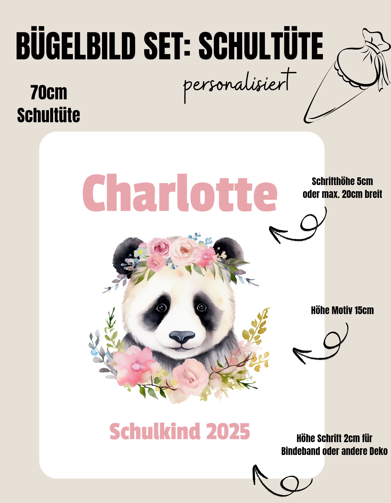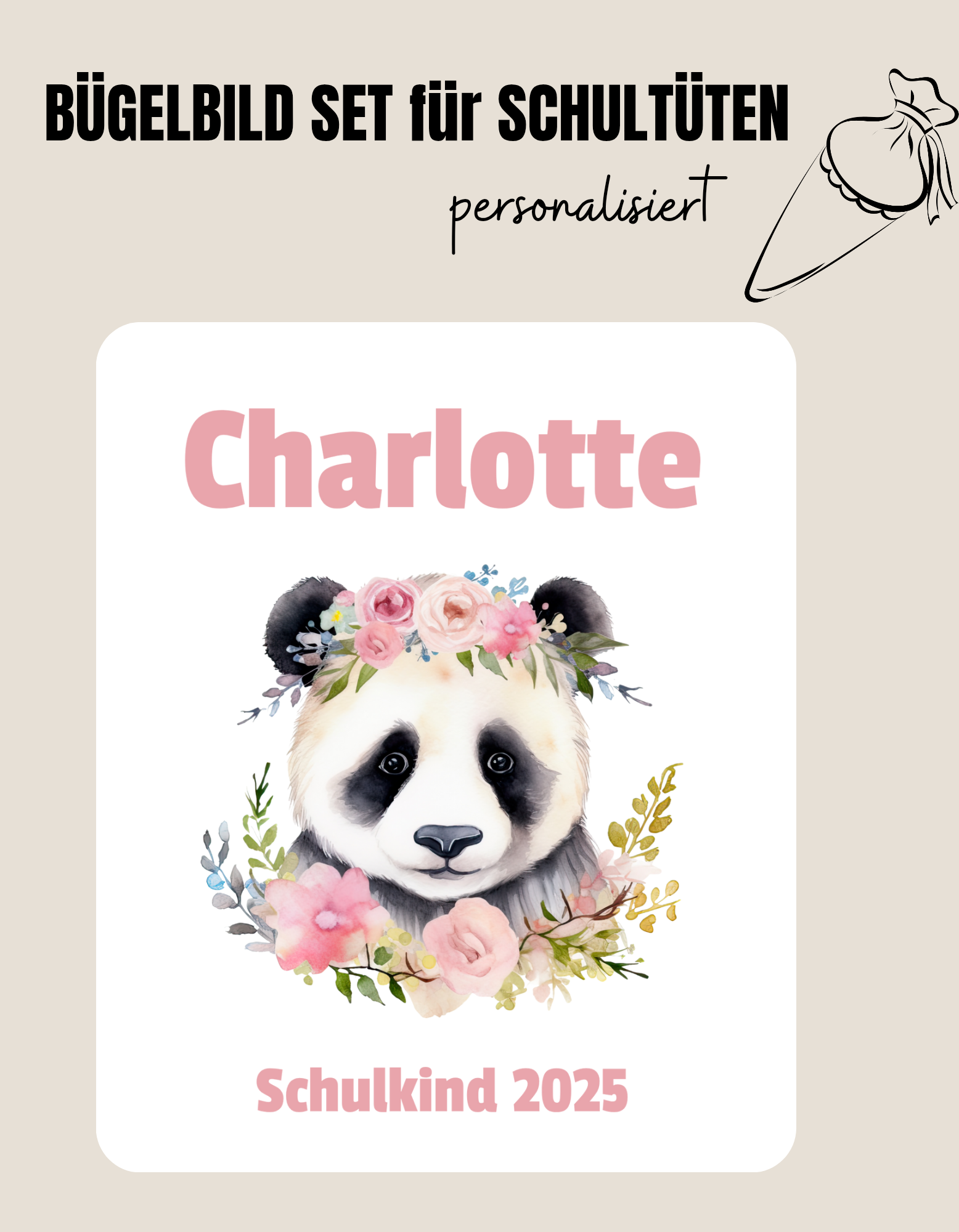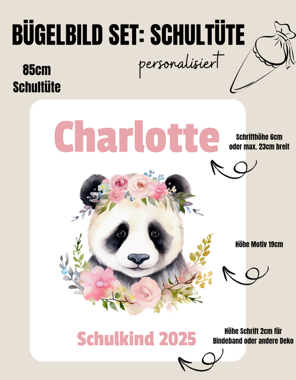 Set für Schultüte *personalisiert* PANDA BLUMENKOPF