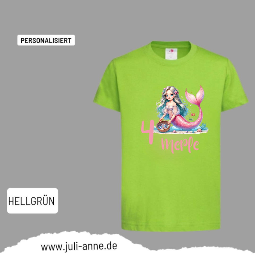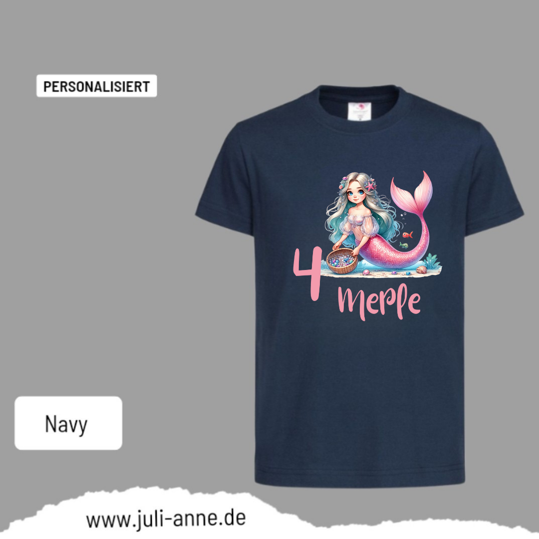 Kinder Basic-Shirt GEBURTSTAG personalisiert Zahl & Name MERMAID CUTIE 8