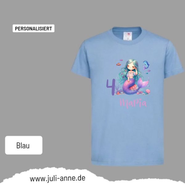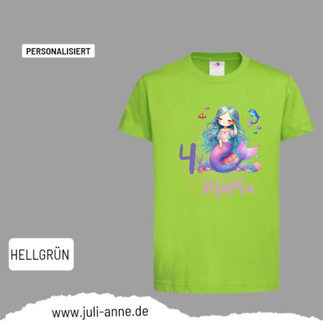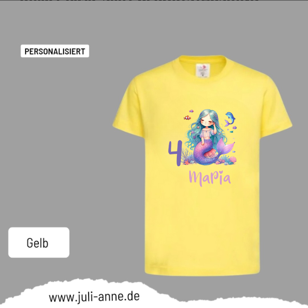 Kinder Basic-Shirt GEBURTSTAG personalisiert Zahl & Name MERMAID CUTIE 9