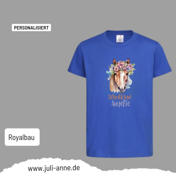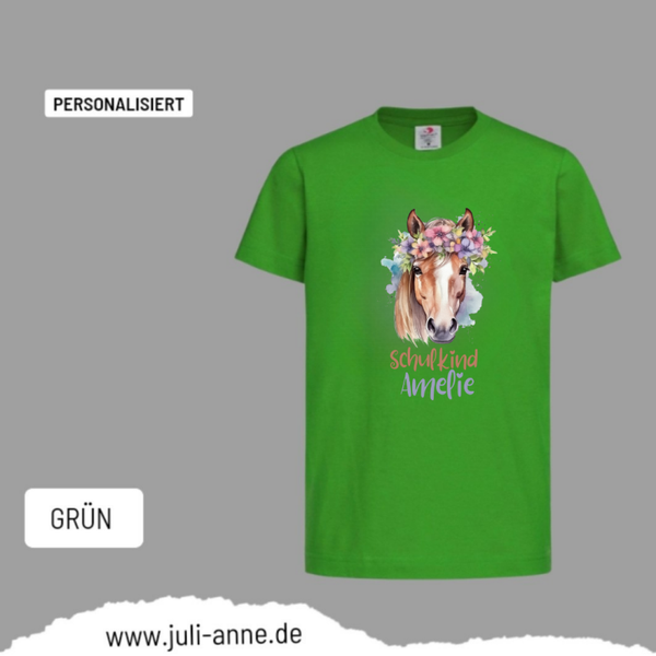 Kinder Basic-Shirt SCHULKIND personalisiert Zahl Name AQUARELL PFERD 5