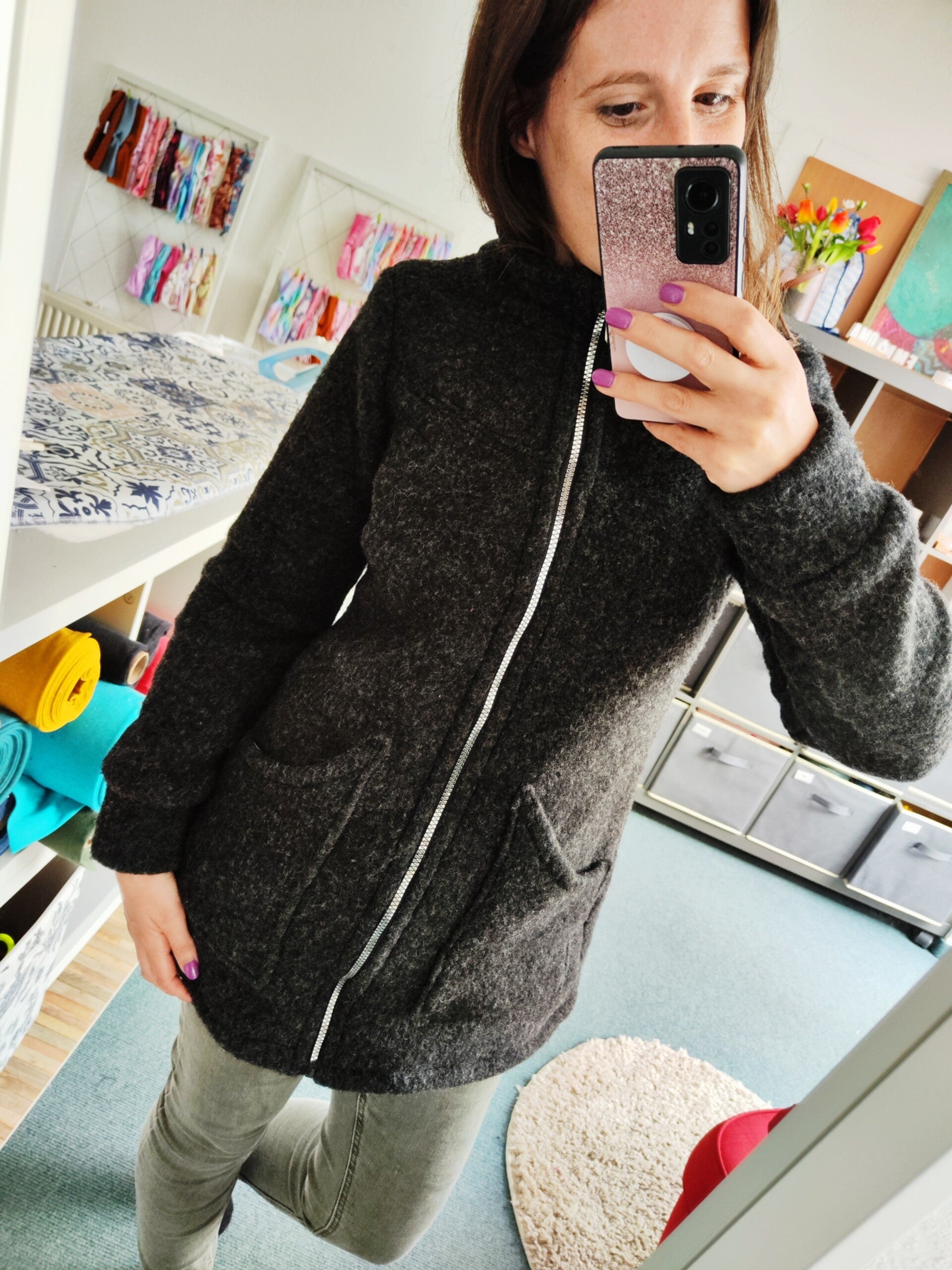 Die Passform ist so konzipiert, das noch ein Pulli oder eine Strickjacke drunter passt.