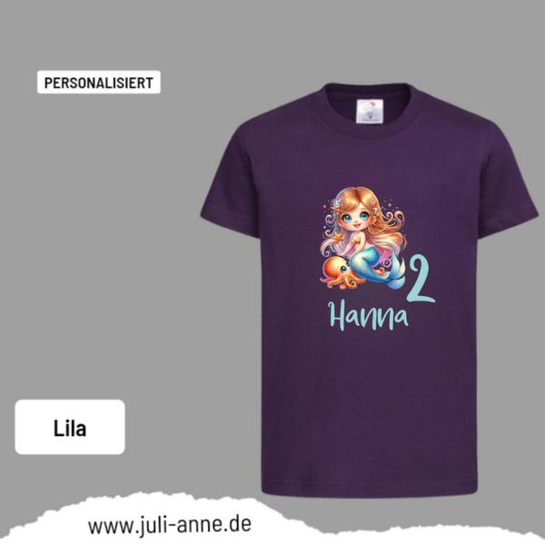 Kinder Basic-Shirt GEBURTSTAG personalisiert Zahl & Name MERMAID CUTIE 11 CUTIE 10
