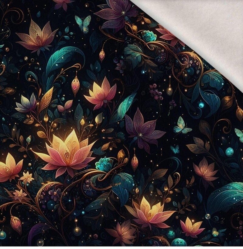 Oben + Ärmel Jersey Blumen Apricot auf Schwarz