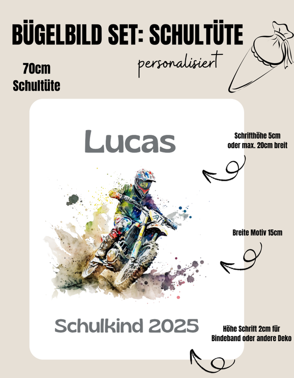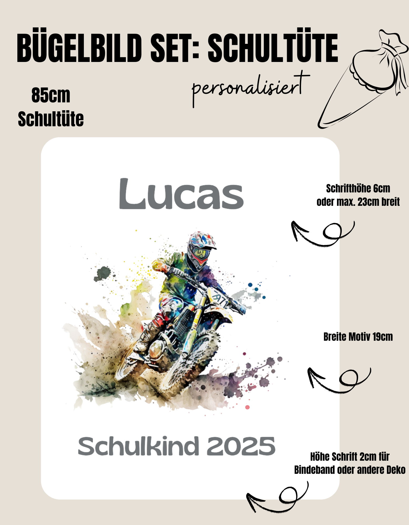 Set für Schultüte *personalisiert* MOTOCROSS GRÜN