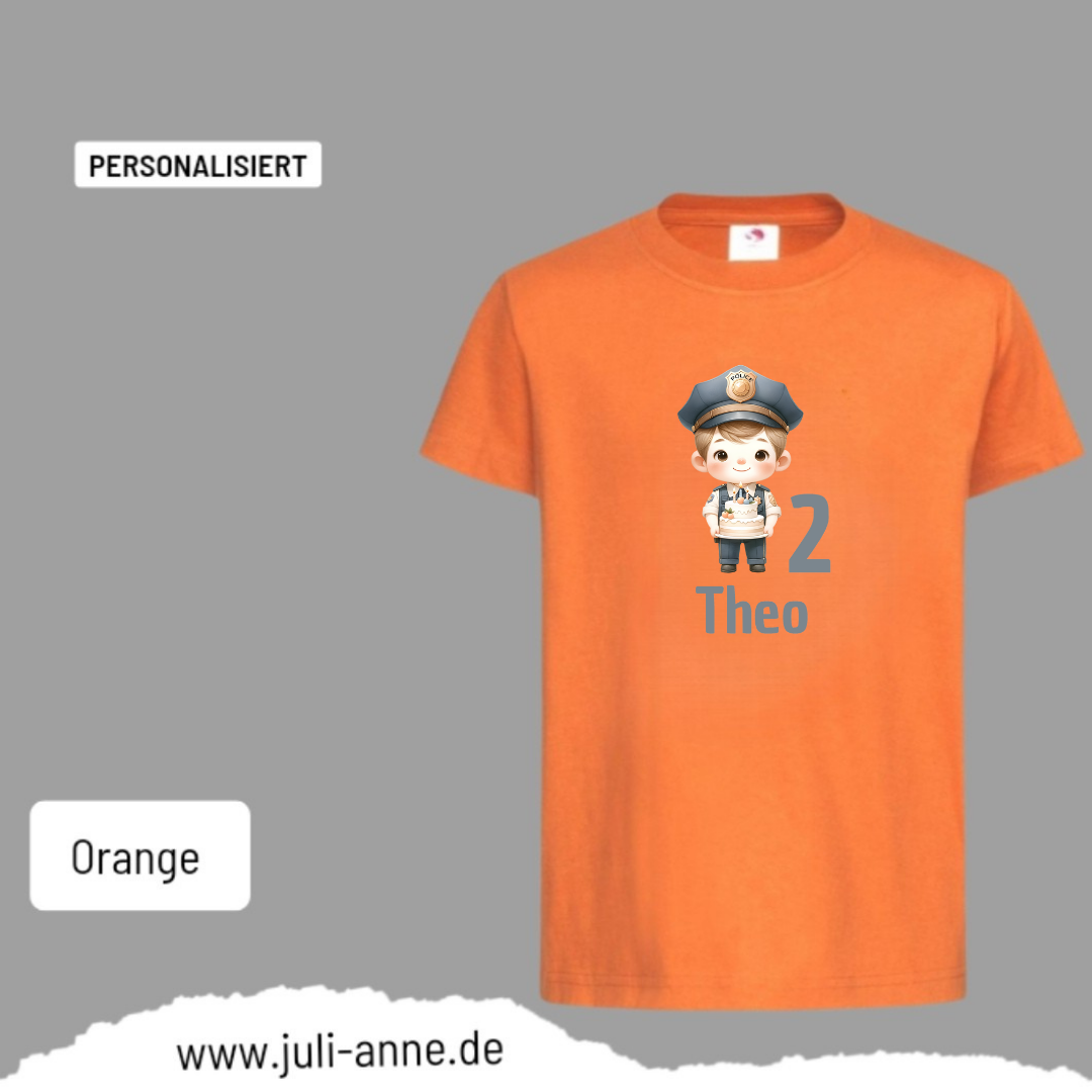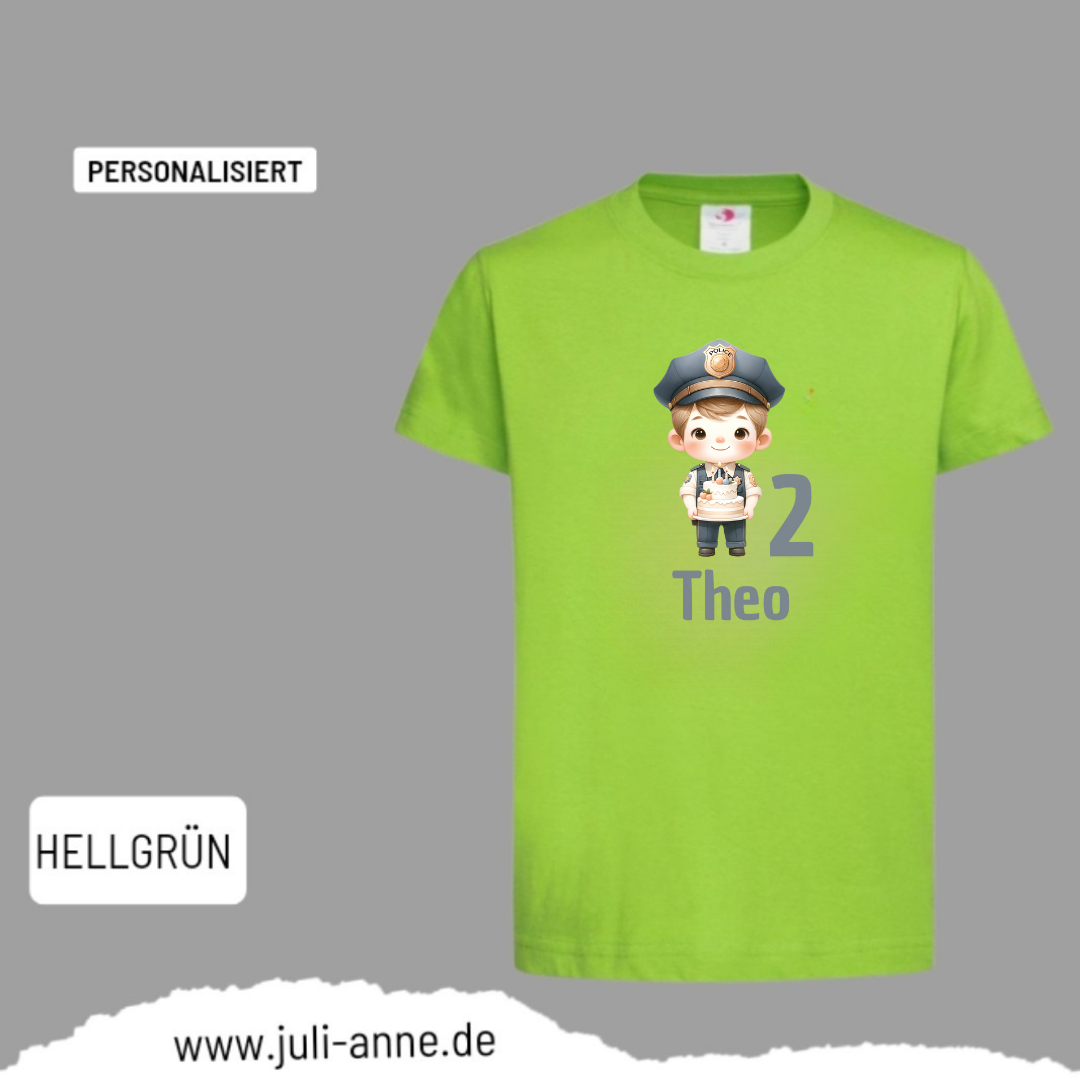 Kinder Basic-Shirt GEBURTSTAG personalisiert Zahl & Name POLIZEI JUNGE Kuchen