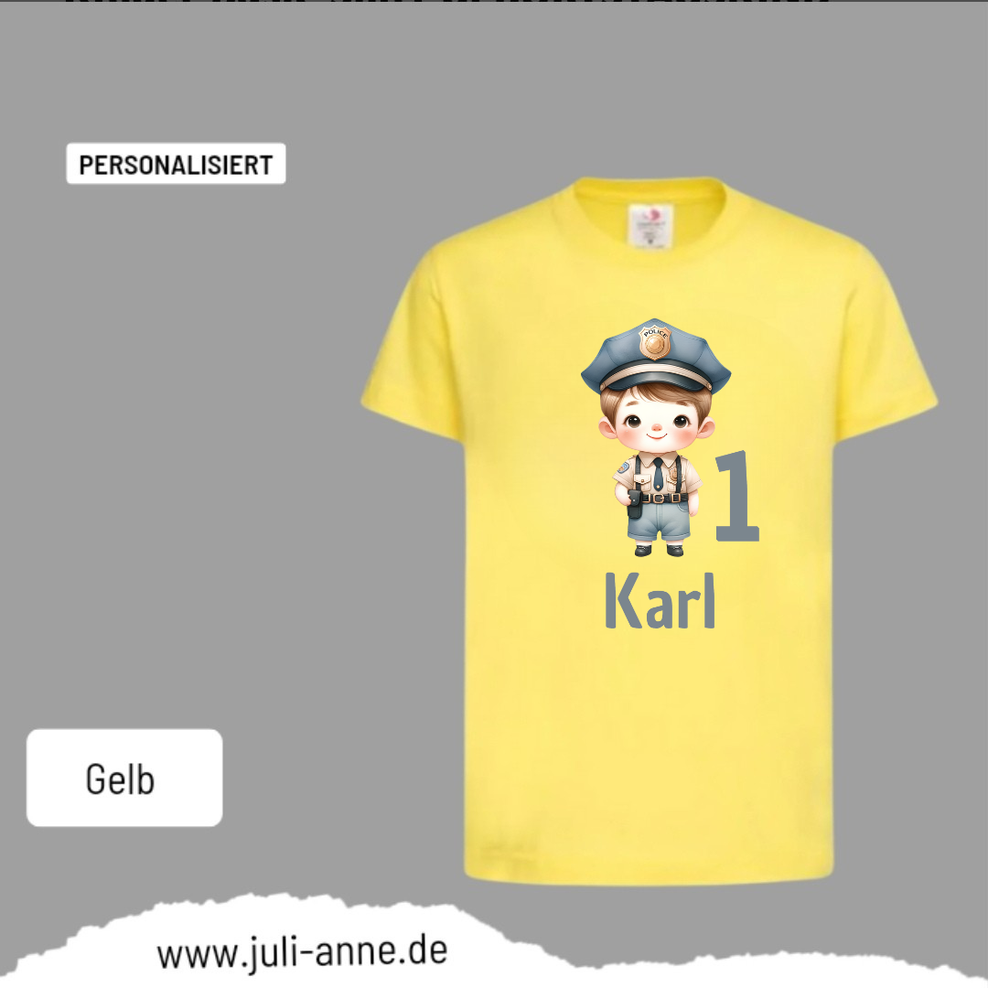 Kinder Basic-Shirt GEBURTSTAG personalisiert Zahl & Name POLIZEI JUNGE
