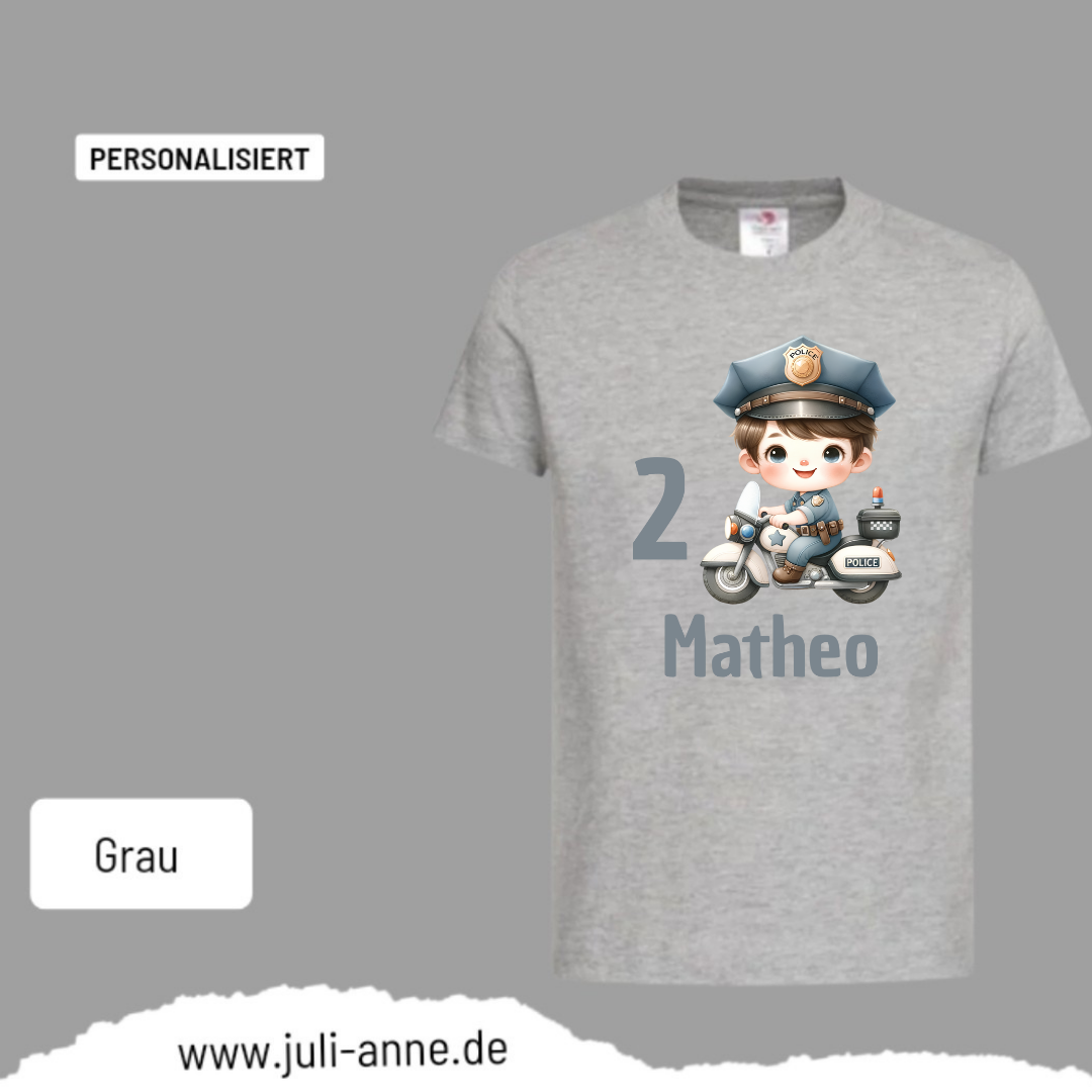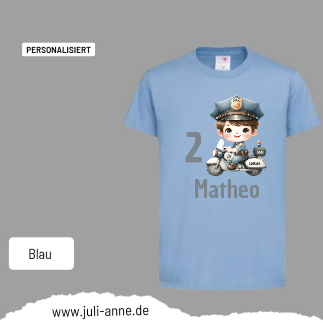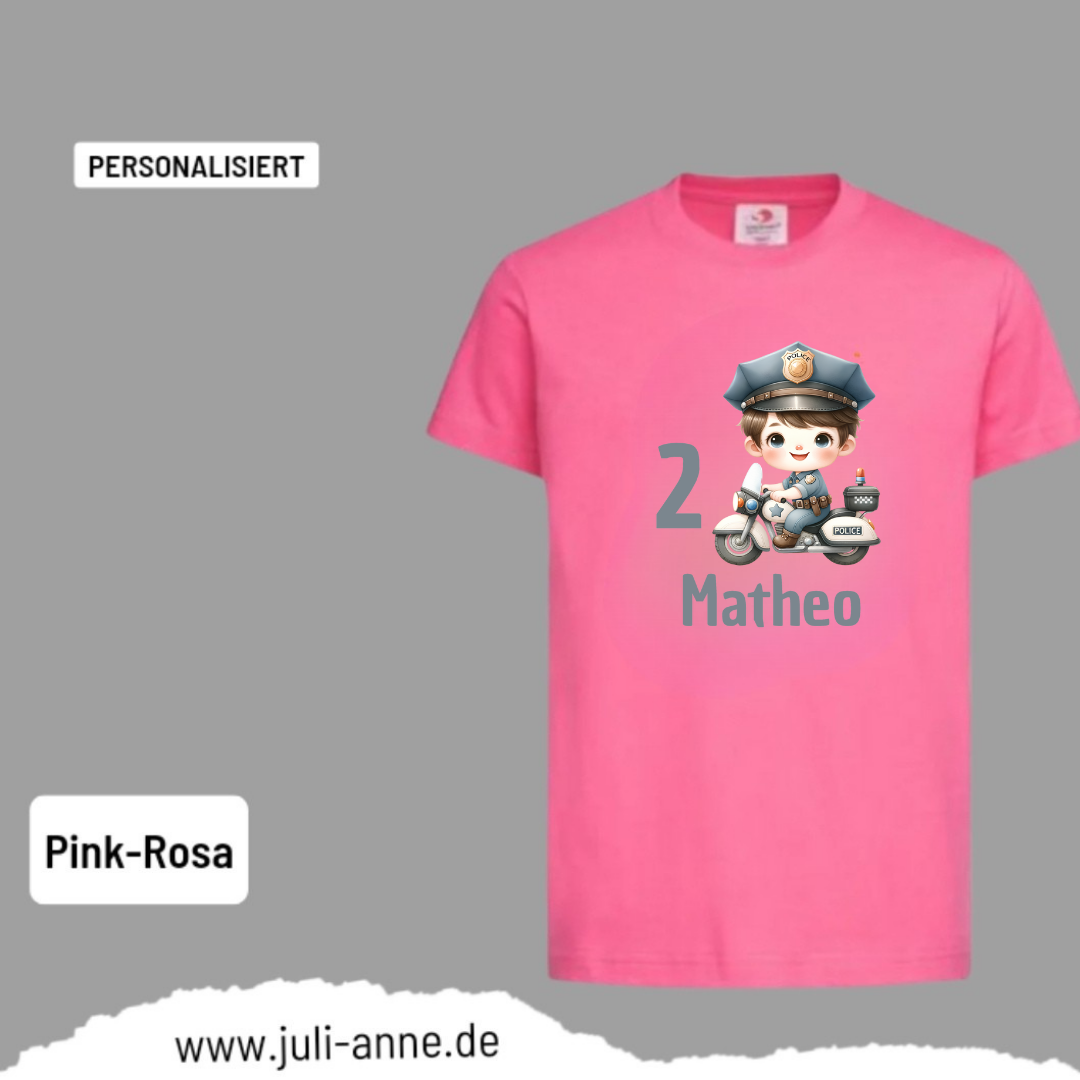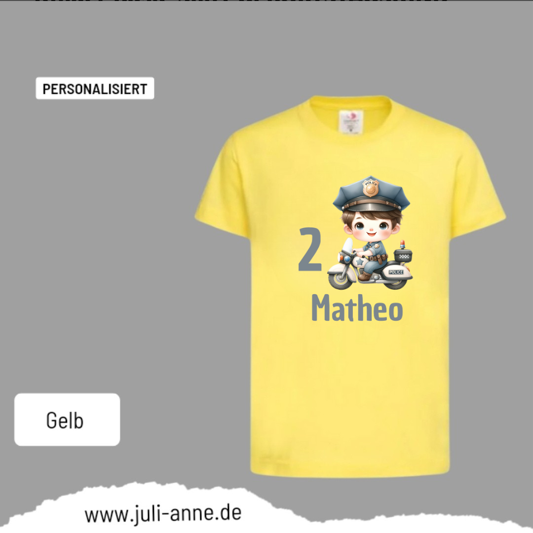 Kinder Basic-Shirt GEBURTSTAG personalisiert Zahl & Name POLIZEI Motorrad