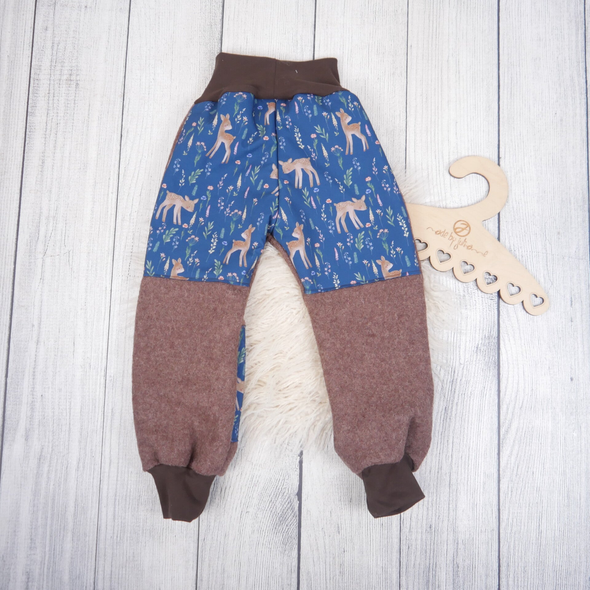 Bei dieser Hose sind die beliebtesten Outdoor-Stoffe miteinander kombiniert ☺️Die Hose aus Wollwalk hat an Po und Knie praktische Verstärkungen aus Softshell. Danit ist sie besonders unempfindlich, wenn dein Kind auf feuchten Boden sitzt und spielt