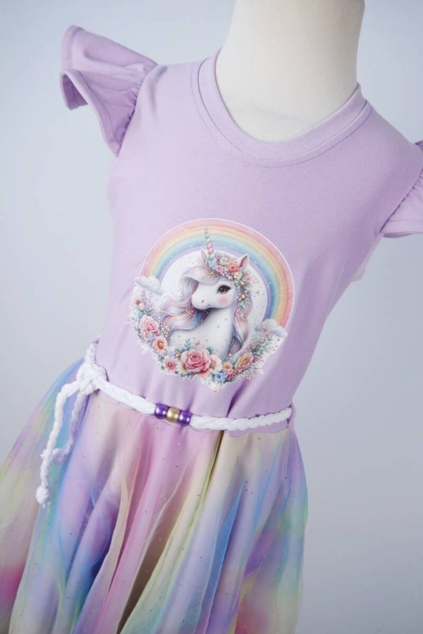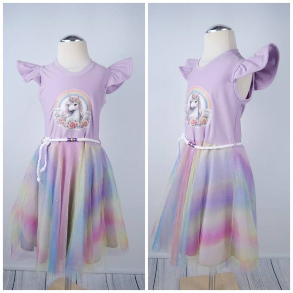 Drehkleid - Raunbow Unicorn Regenbogen Glitzer Tüll