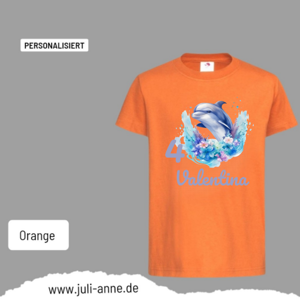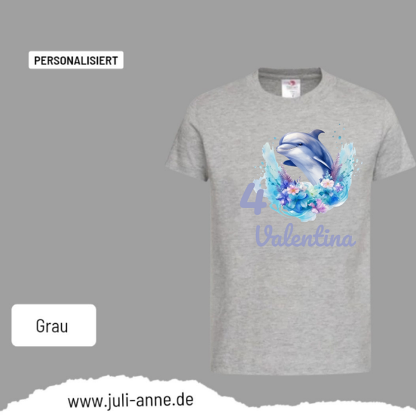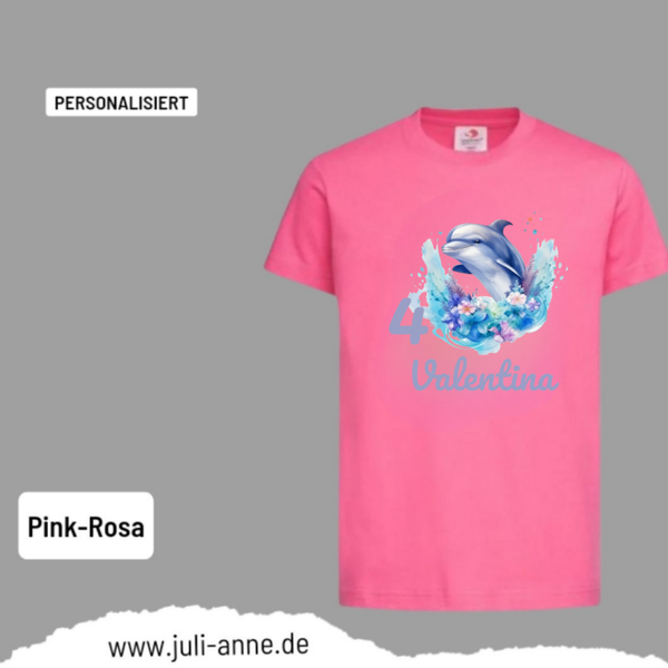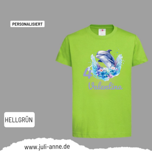 Kinder Basic-Shirt GEBURTSTAG personalisiert Zahl & Name AQUA DELFIN 1