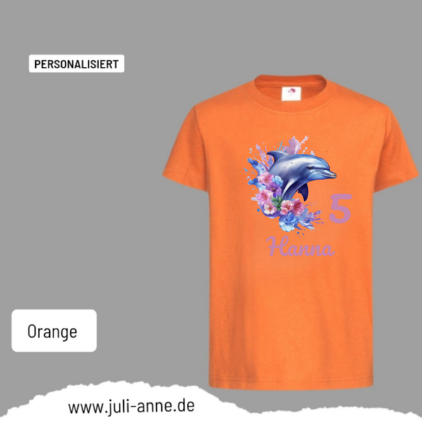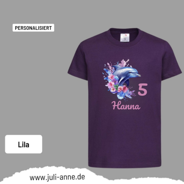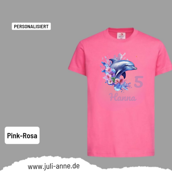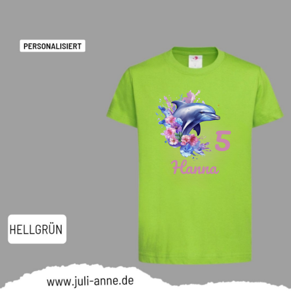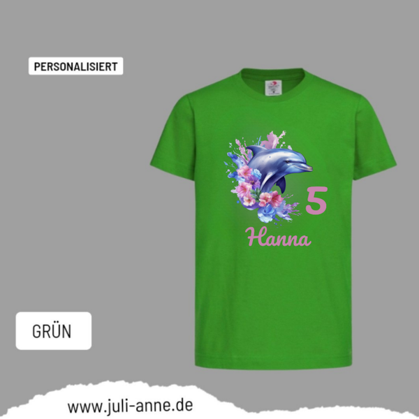 Kinder Basic-Shirt GEBURTSTAG personalisiert Zahl & Name AQUA DELFIN 2