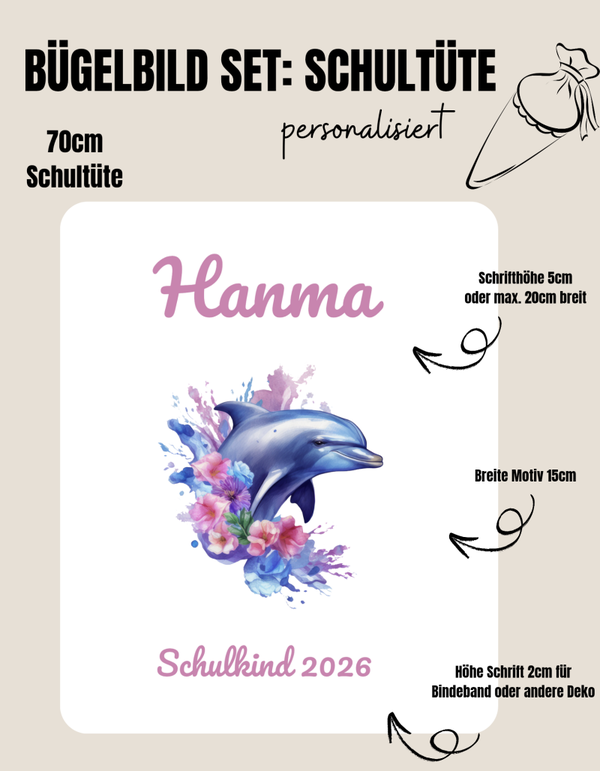 Dieses Set ist nicht nur PERSONALISIERT mit Wunschnamen bestellbar sondern von der Größe perfekt für Schultüten abgestimmt. Hierbei biete ich das Set sogar jeweils für Schultüten mit 70cm und 85cm Höhe an.