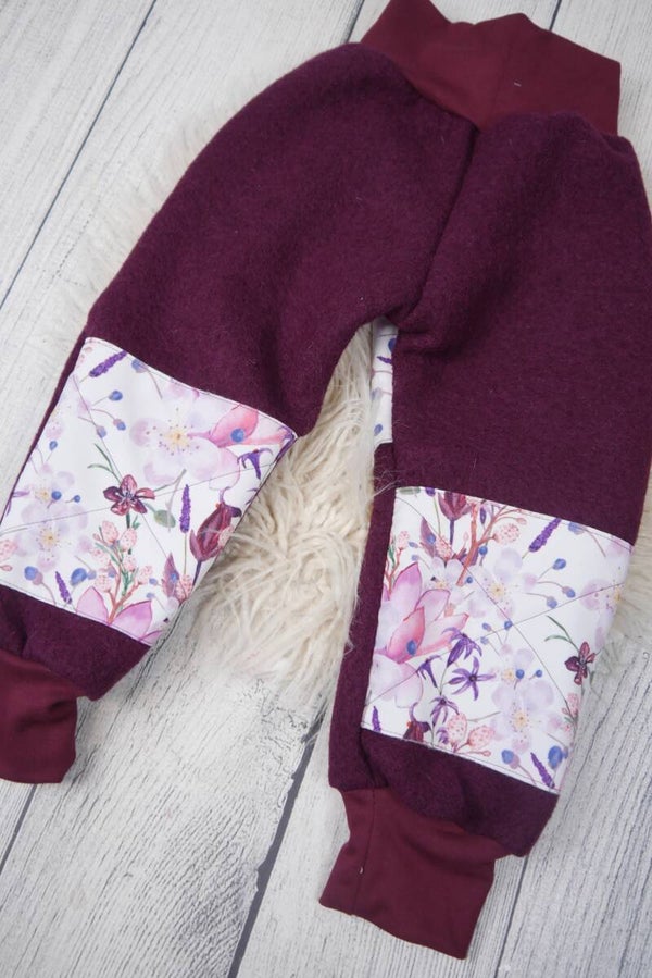 86/92 Walk-Hose Aubergine mit Softshell Verstärkung Blumen
