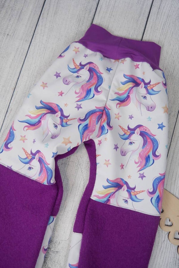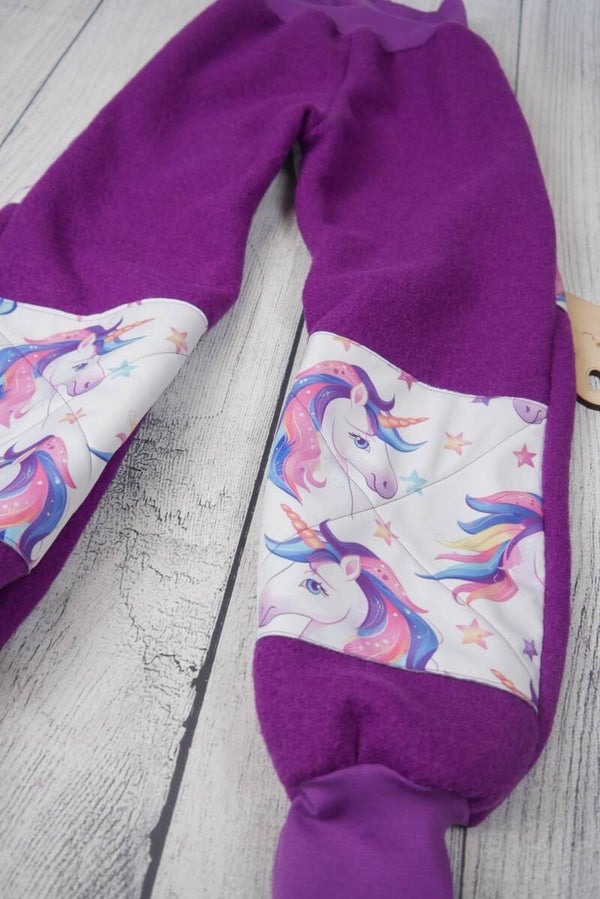 122/128 Walk-Hose Fuchsia mit Softshell Verstärkung Einhörner