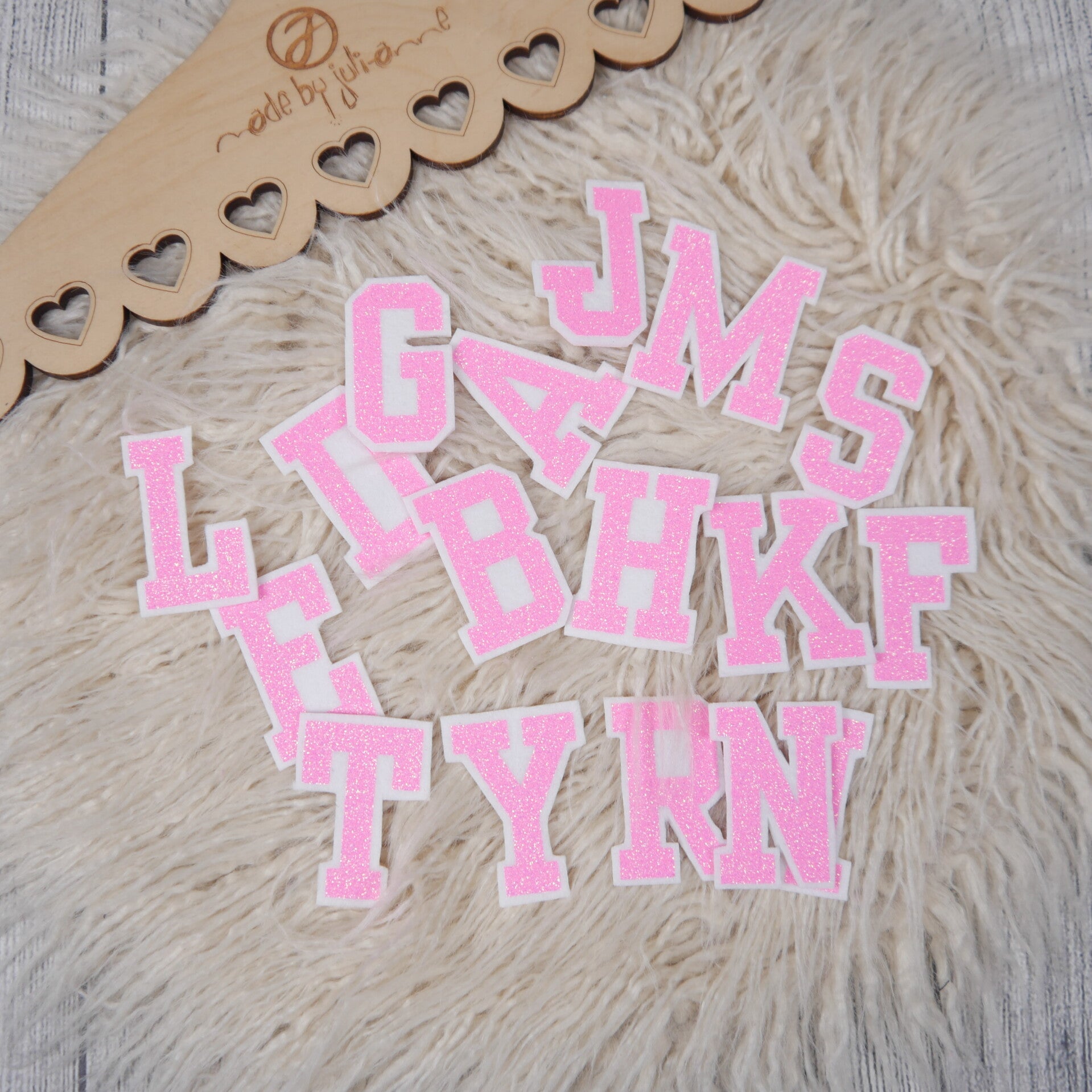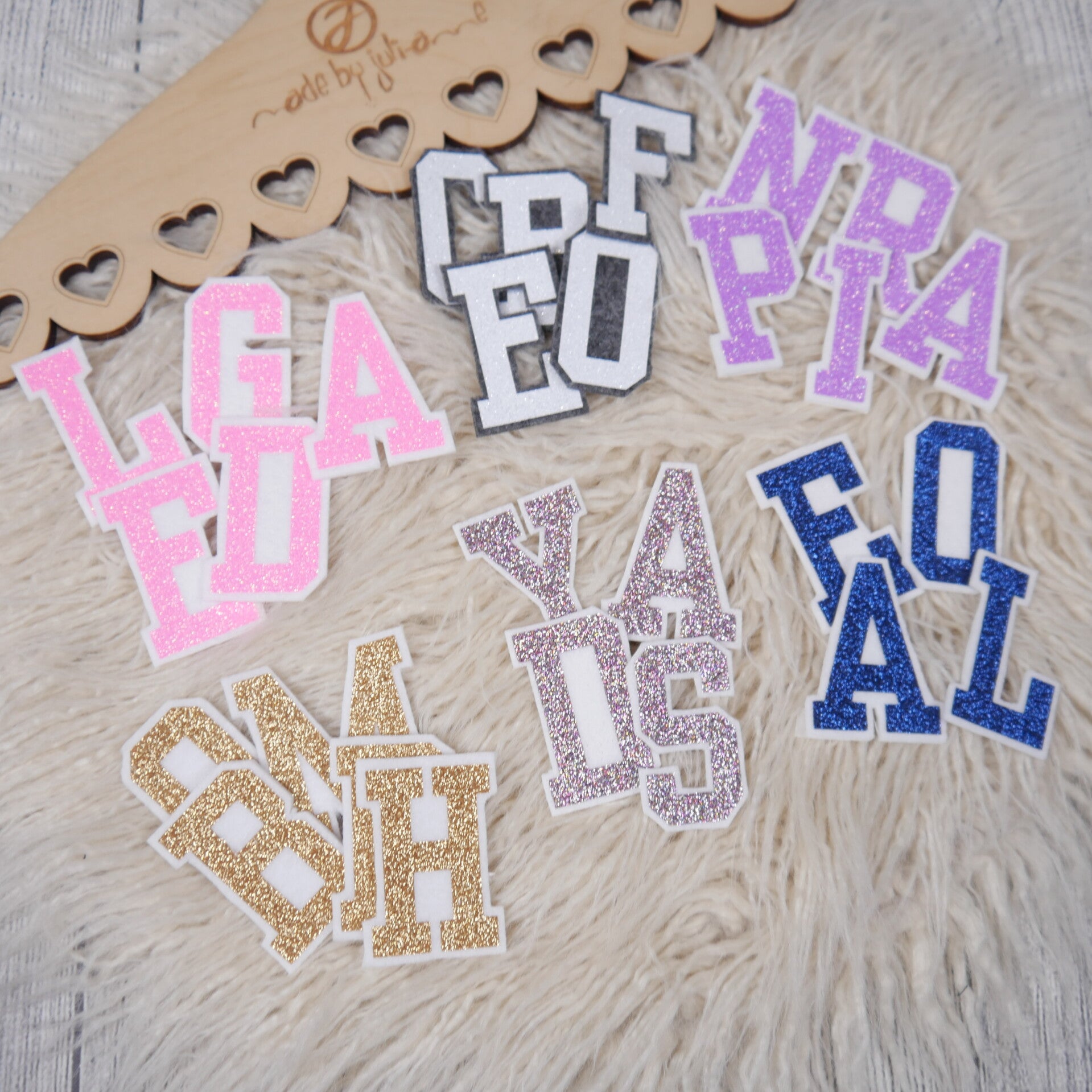 MEINE liebevoll in Handarbeit gefertigten Buchstaben und Zahlen bestehen aus einer hochwertigen Glitzerfolie in Kombination mit 3 mm starkem Filzstoff, der für einen wunderschönen 3D-Effekt sorgt. Jeder Buchstabe ist ein echter Hingucker und verleiht Kleidung, Taschen oder Deko-Projekten eine ganz persönliche Note.