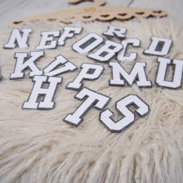3D Glitzer Buchstabe im College Stil - Weiß-Grau