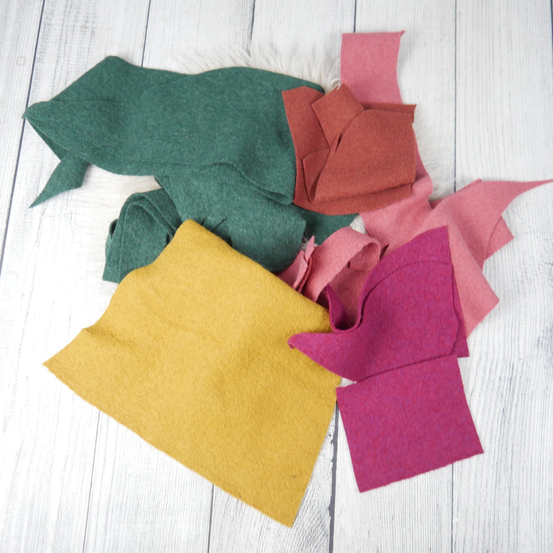 Diese Wollwalk-Reste sind ideal, um deine Kreativität auszuleben – ob für Upcycling, Basteln, oder Nähen. Durch die bunten Farben und hochwertigen Wollstoffe entsteht aus jedem Rest etwas ganz Besonderes.