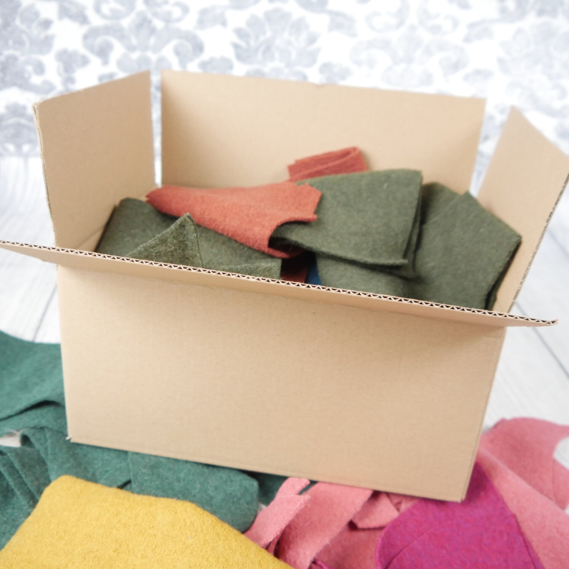 🧶 Bunte Wollwalk-Stoffreste – ganze Kiste voll mit Wollwalk-Abschnitten (30 x 20 x 15 cm)