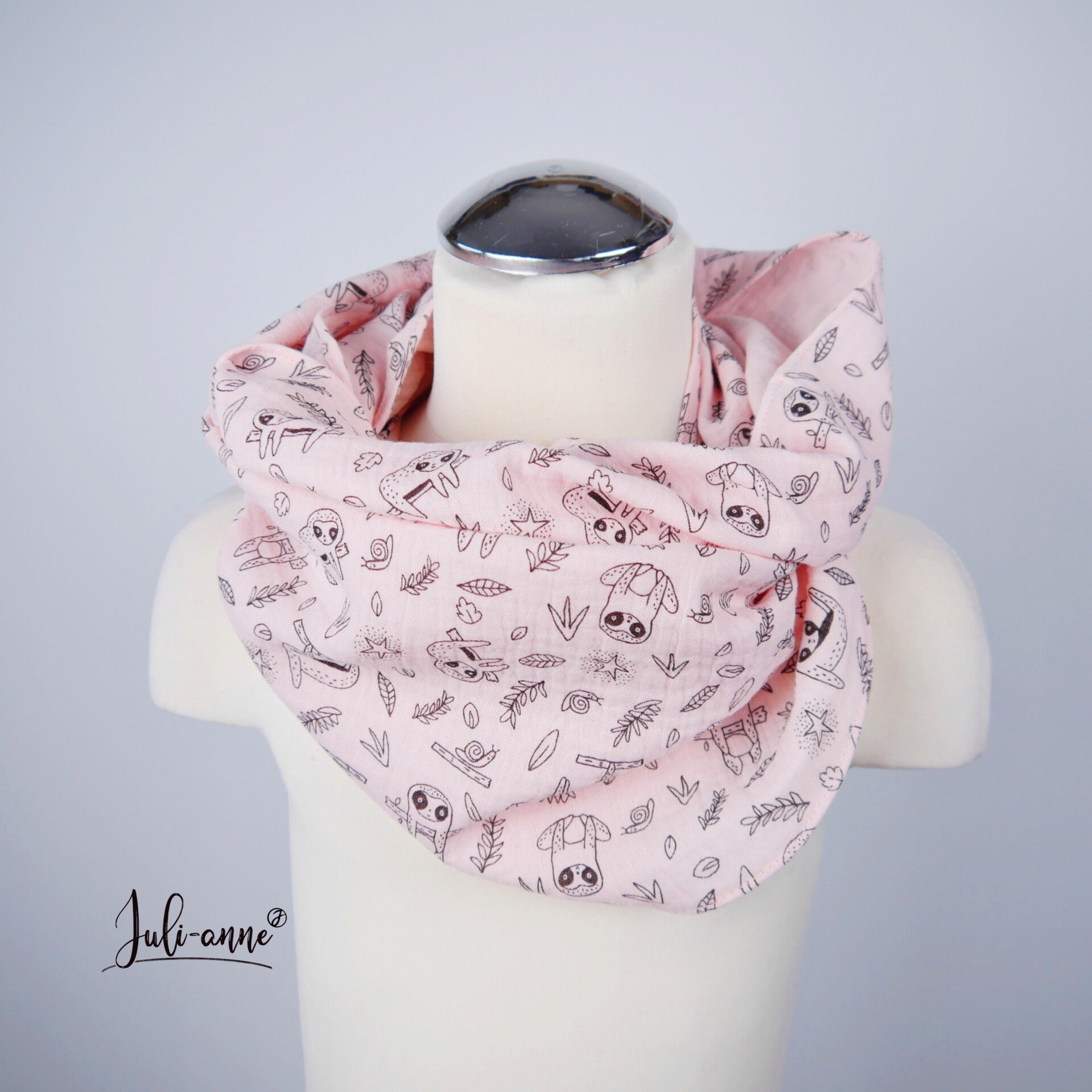 Kids: Musselin LOOP Schal - Faultiere Rosa/Apricot