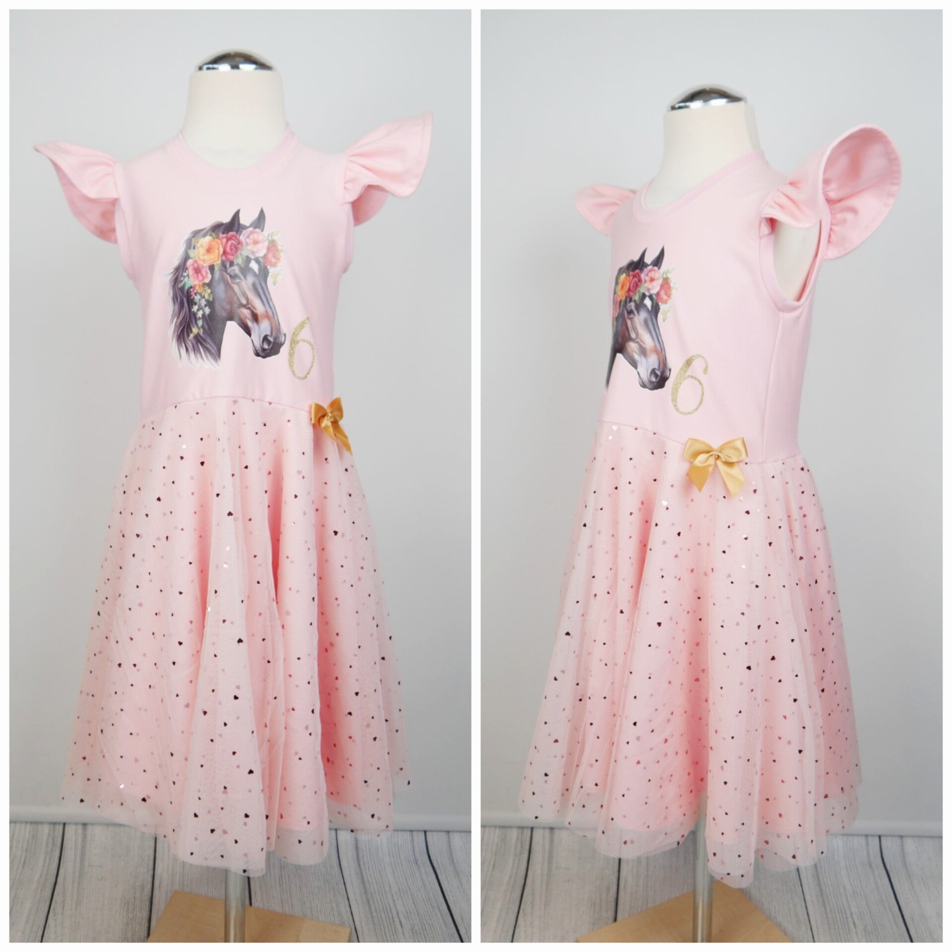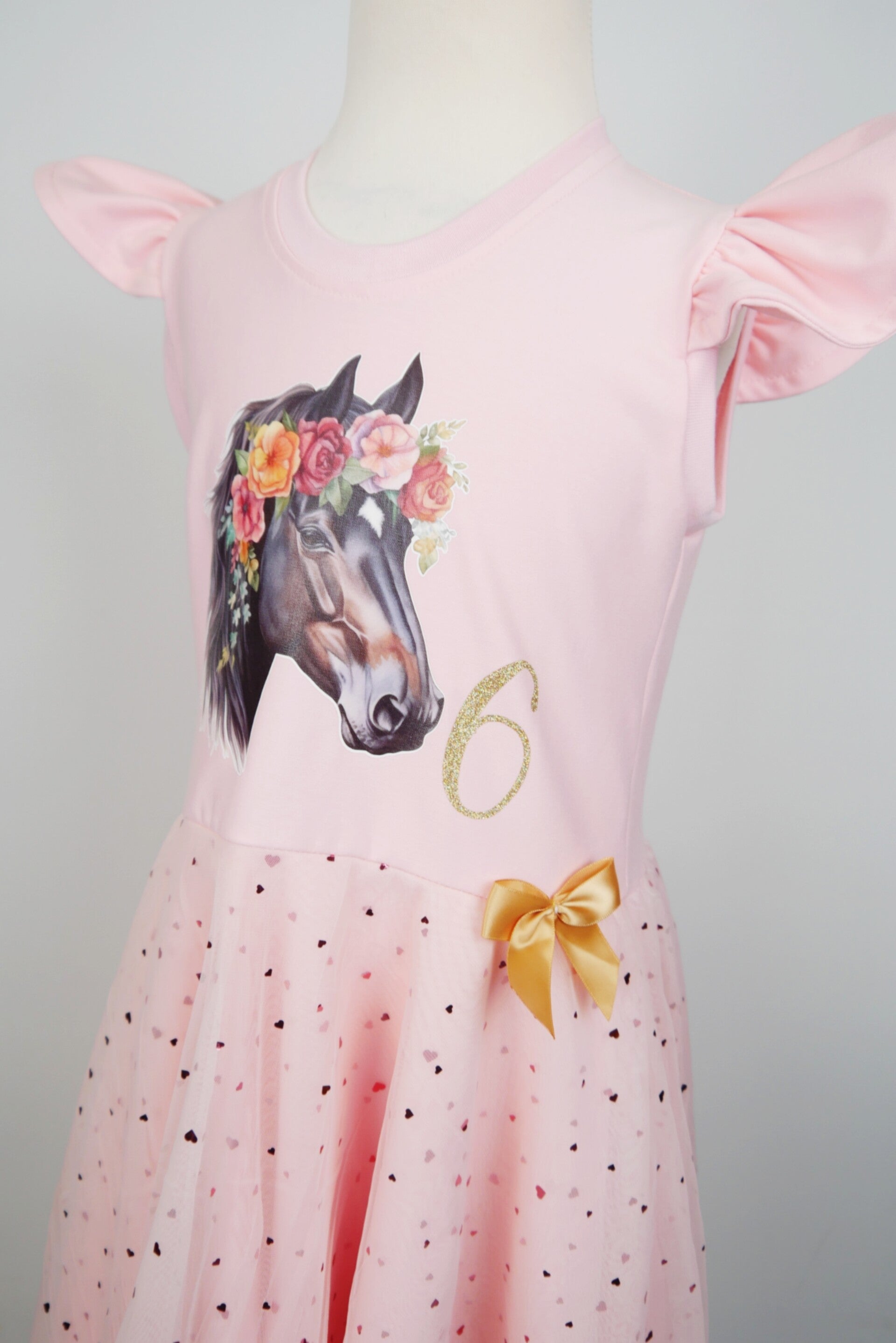 Personalisiertes Geburtstags-Drehkleid in Pink mit rosa Herzchentüll & Pegasus ✨