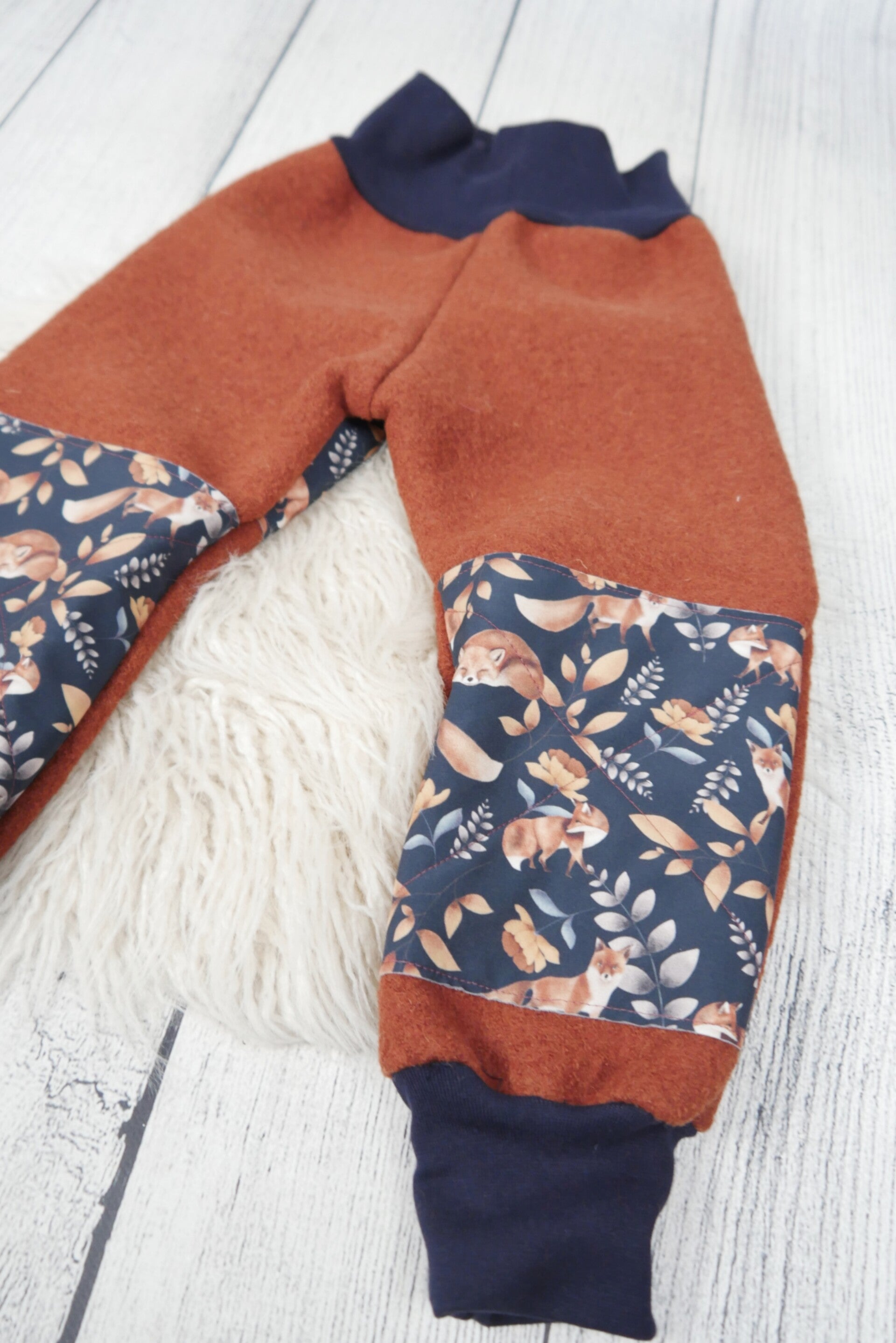 Bei dieser Hose sind die beliebtesten Outdoor-Stoffe miteinander kombiniert ☺️Die Hose aus Wollwalk hat an Po und Knie praktische Verstärkungen aus Softshell. Danit ist sie besonders unempfindlich, wenn dein Kind auf feuchten Boden sitzt und spielt