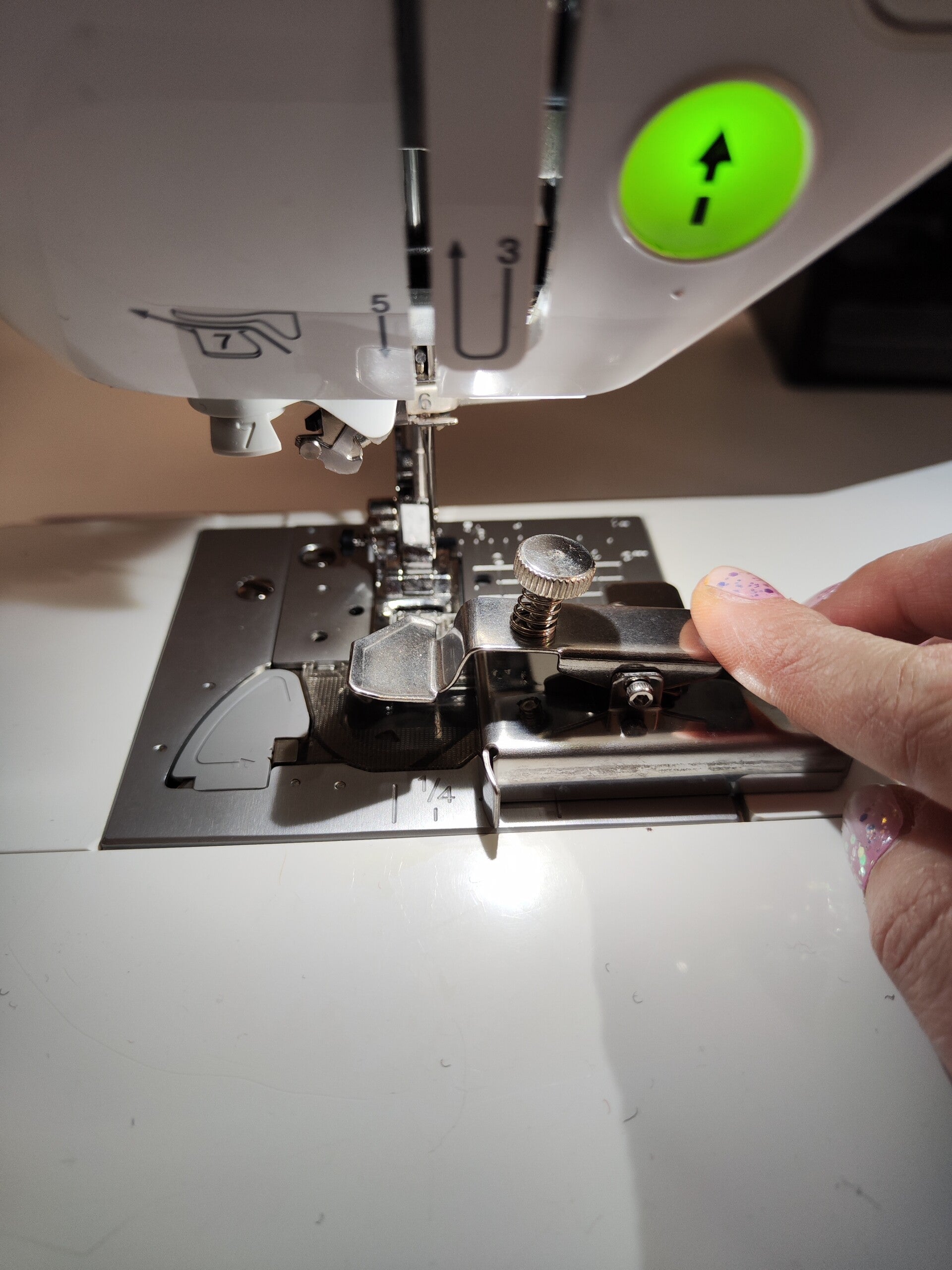 Ein besonders praktisches Gadget bei dieser saumhilfe ist, dass der Stoff oben noch mit dem Bügel festgehalten wird. Ihr könnt diesen dank der Stellschraube auf die Stoffdicke eures Projektes anpassen.