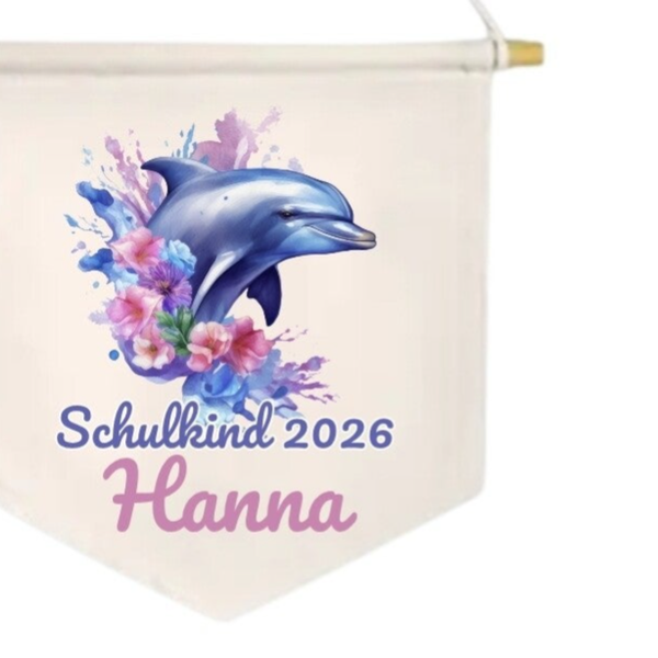 LEINWAND-BANNER Schulkind *personalisiert - Aquarell Delfin 2