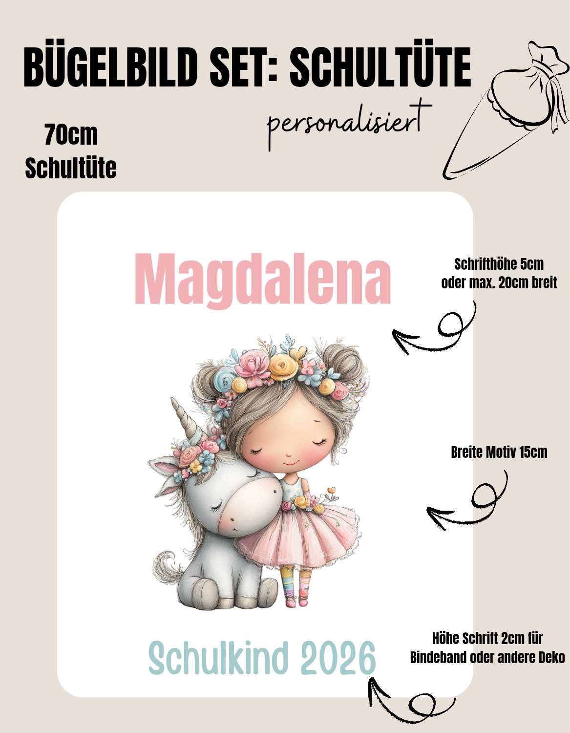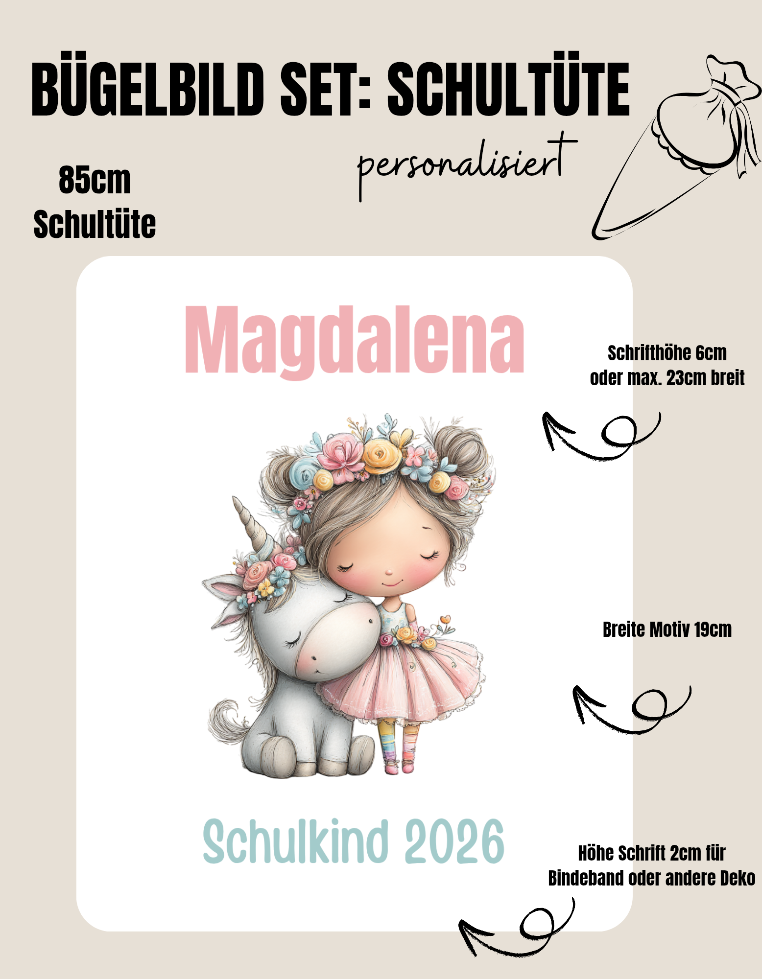 Set für Schultüte *personalisiert* EINHORN MÄDCHEN 2