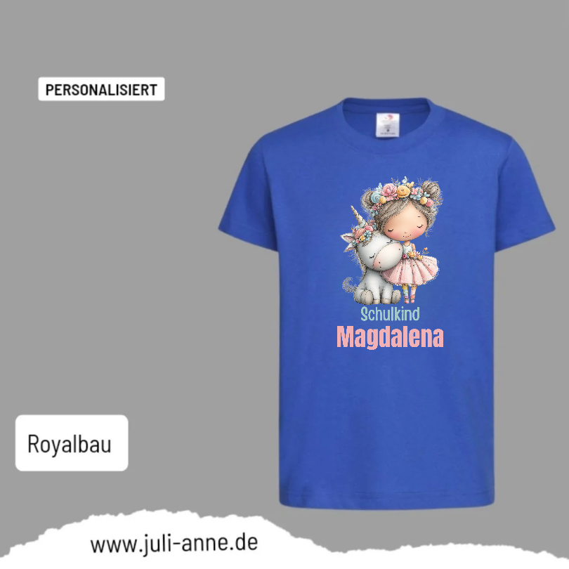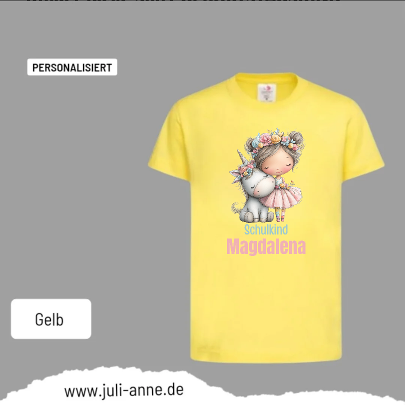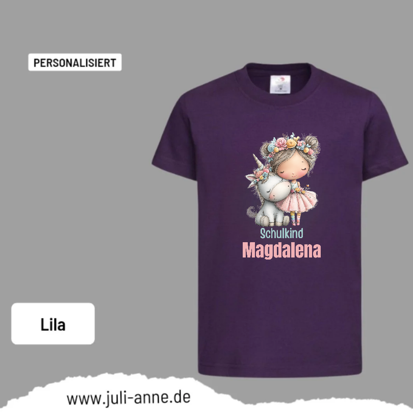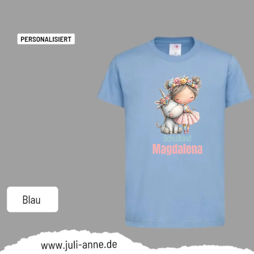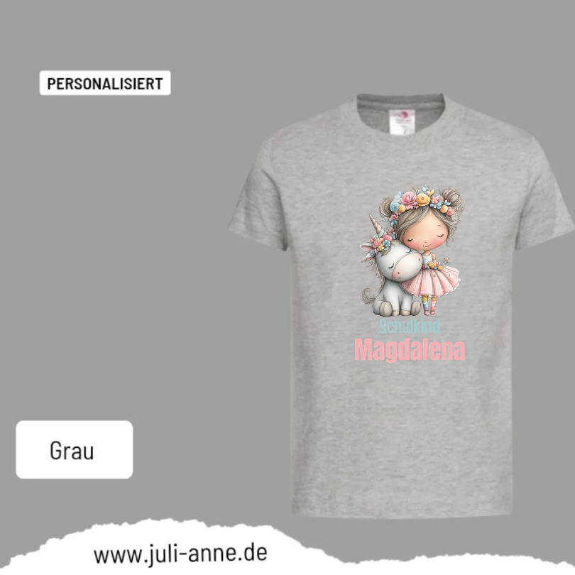 Kinder Basic-Shirt SCHULKIND personalisiert Zahl Name EINHORN MÄDCHEN 2
