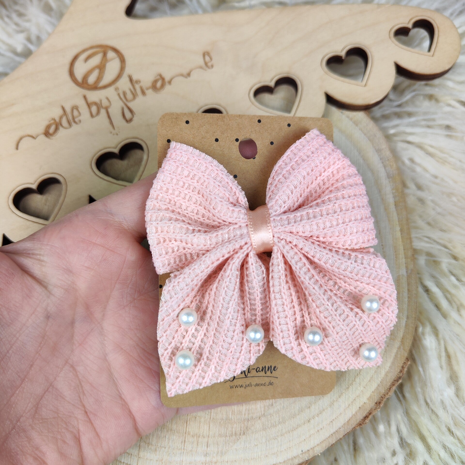 Schleifen Haar-Clip Waffel Rosa mit Perlen