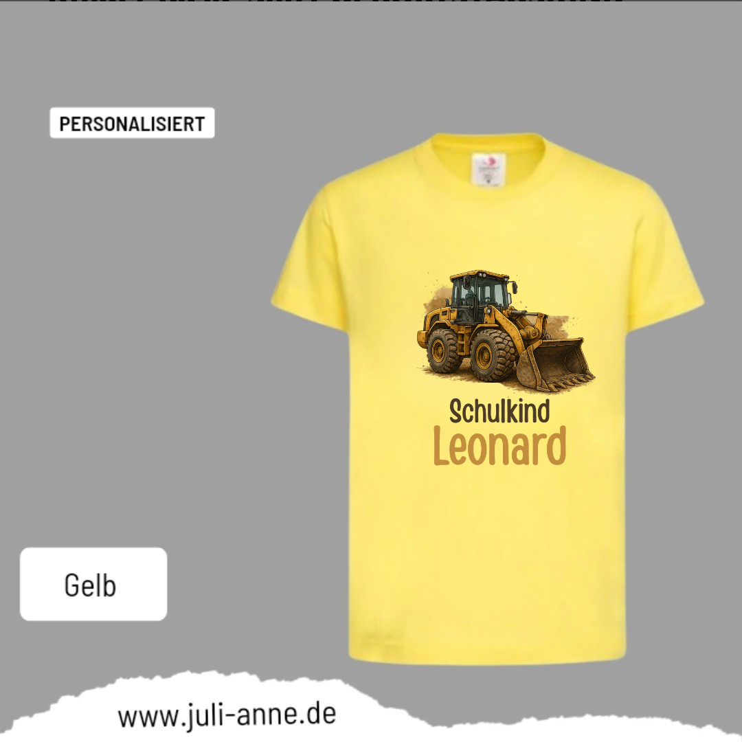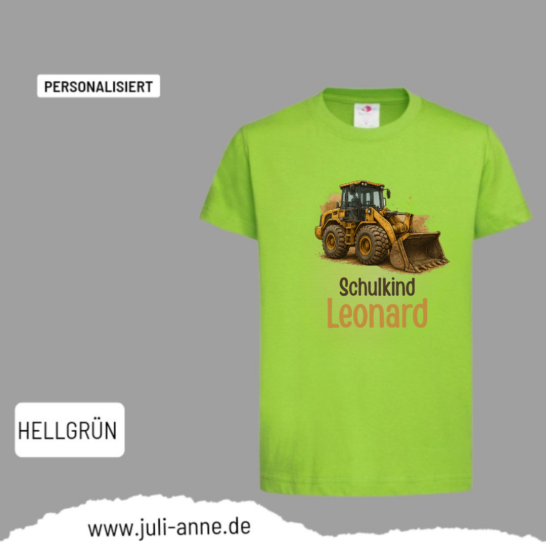Kinder Basic-Shirt SCHULKIND personalisiert Zahl Name BULLDOZER
