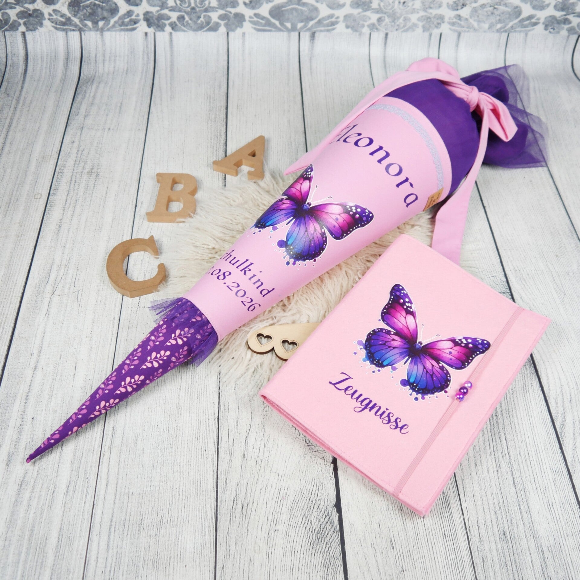 Schultüte Schmetterling Rosa Lila Tüll 70cm / 85cm / Geschwister Step by Step Butterfly Night Ina