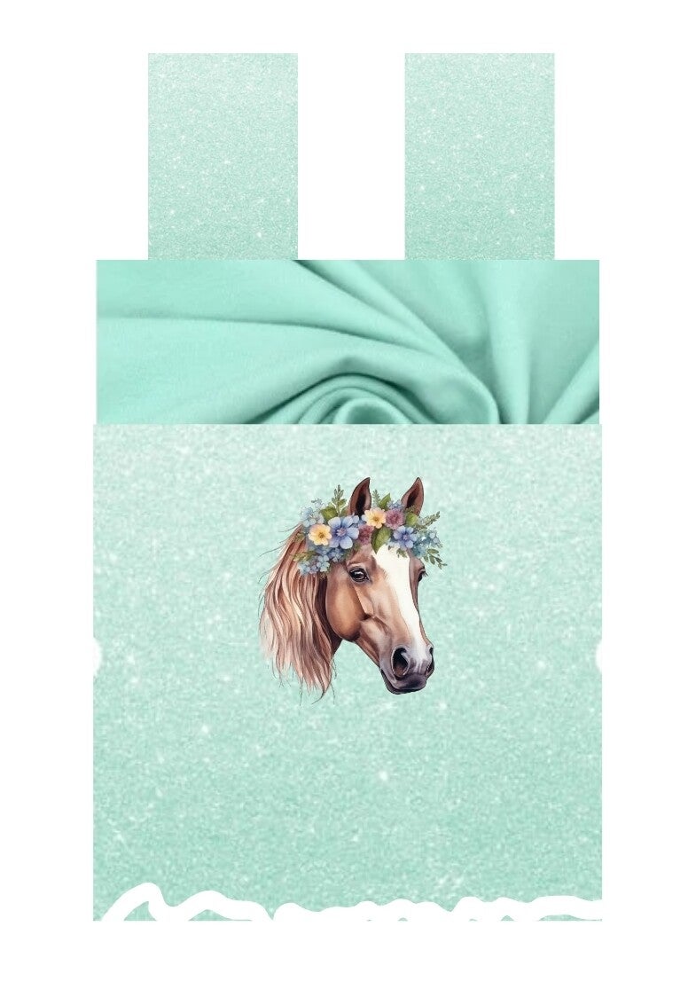 Wie abgebildet mit Fake Glitzer Stoff und Uni Mint + Bügelbild