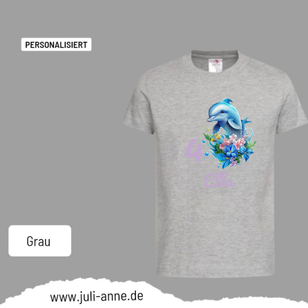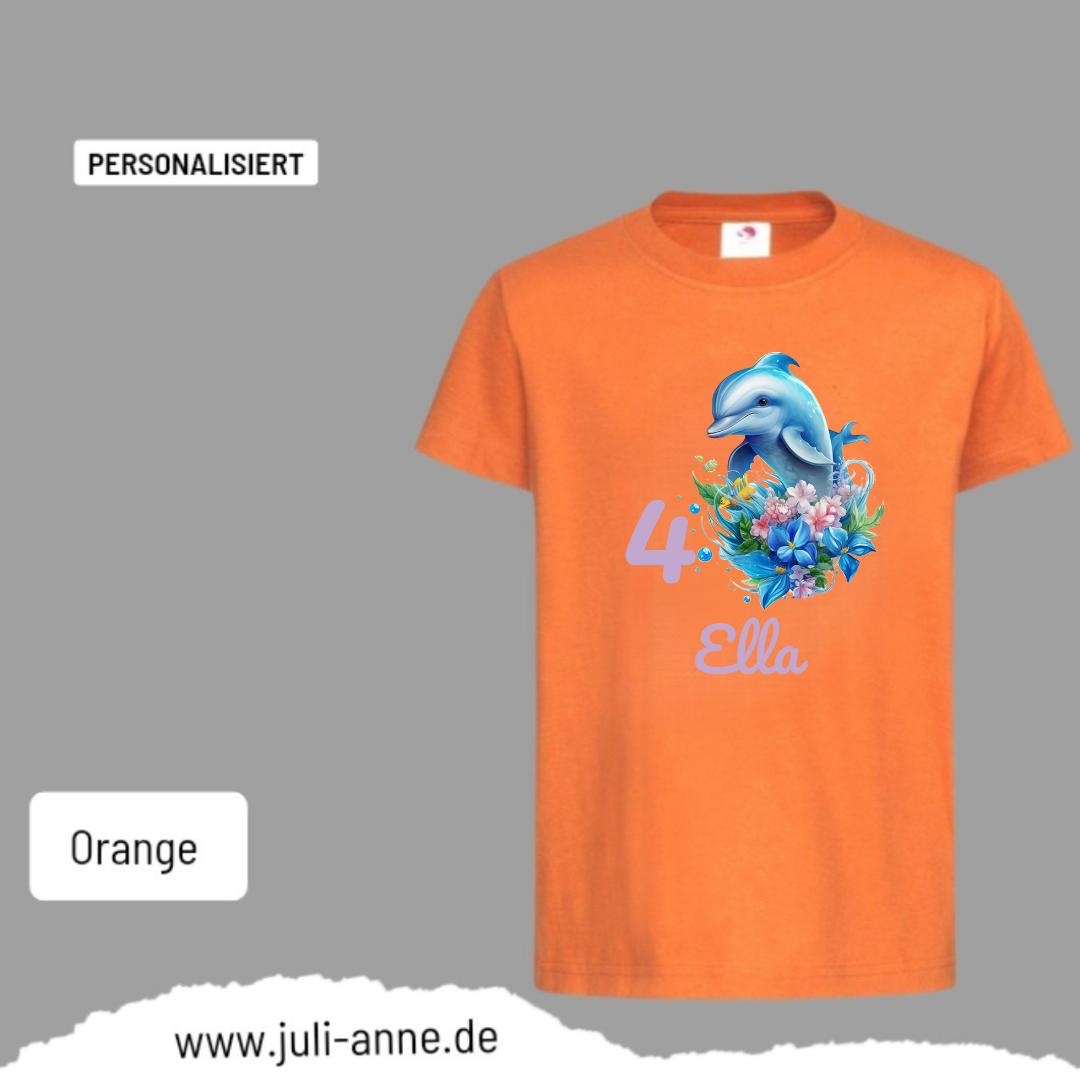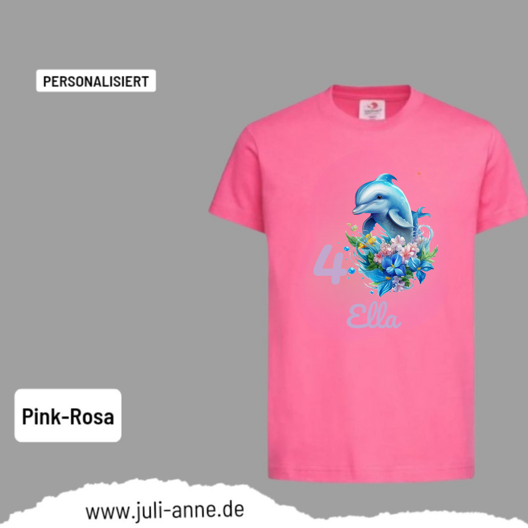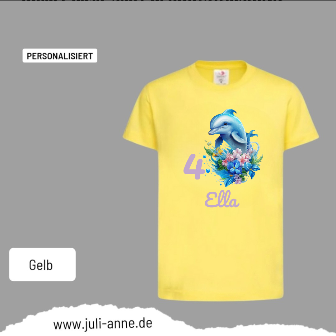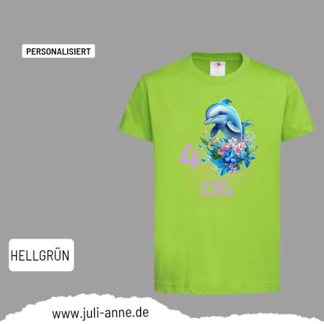 Kinder Basic-Shirt GEBURTSTAG personalisiert Zahl & Name AQUA DELFIN 4