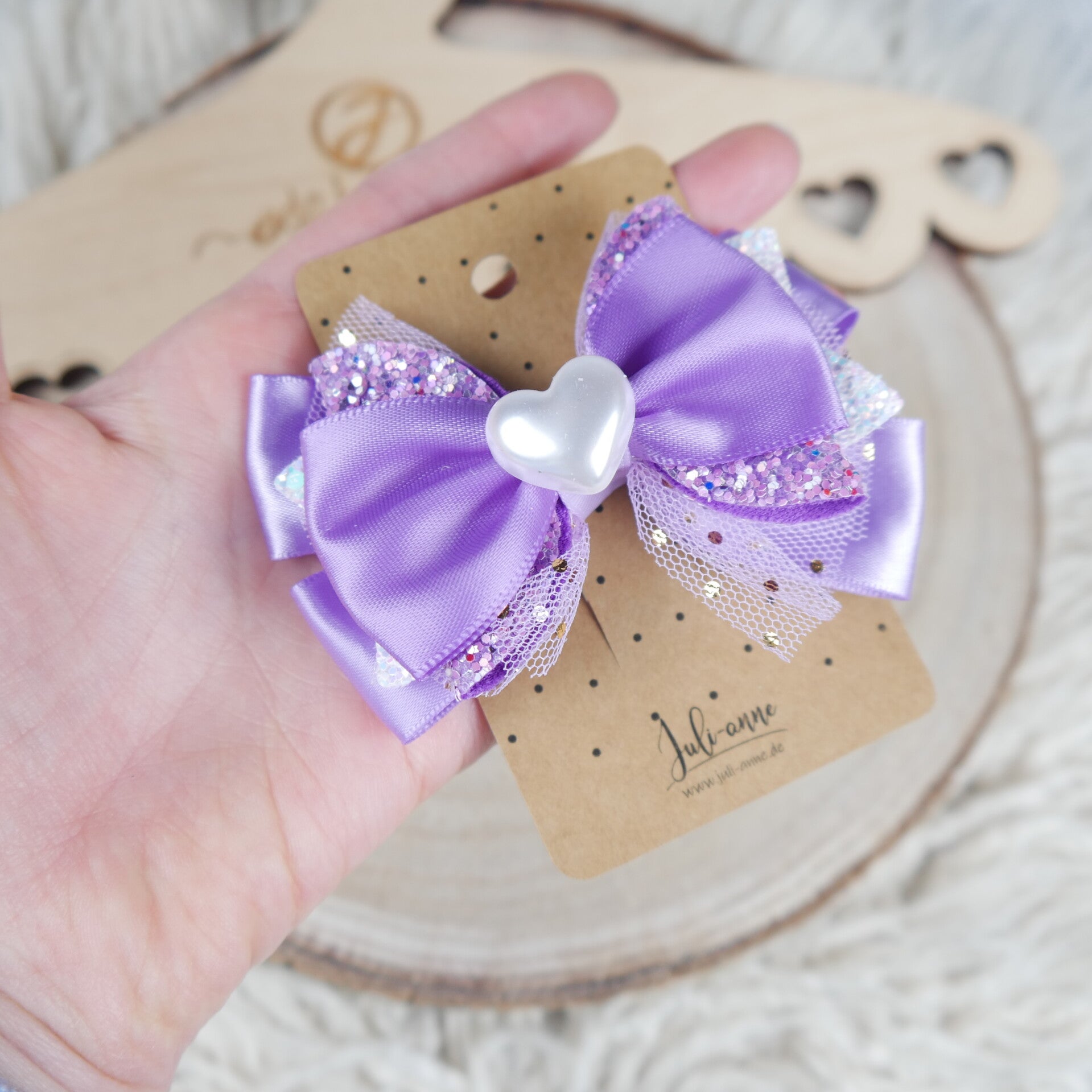 Schleifen Haar-Clip Lila mit Herz Glitzer