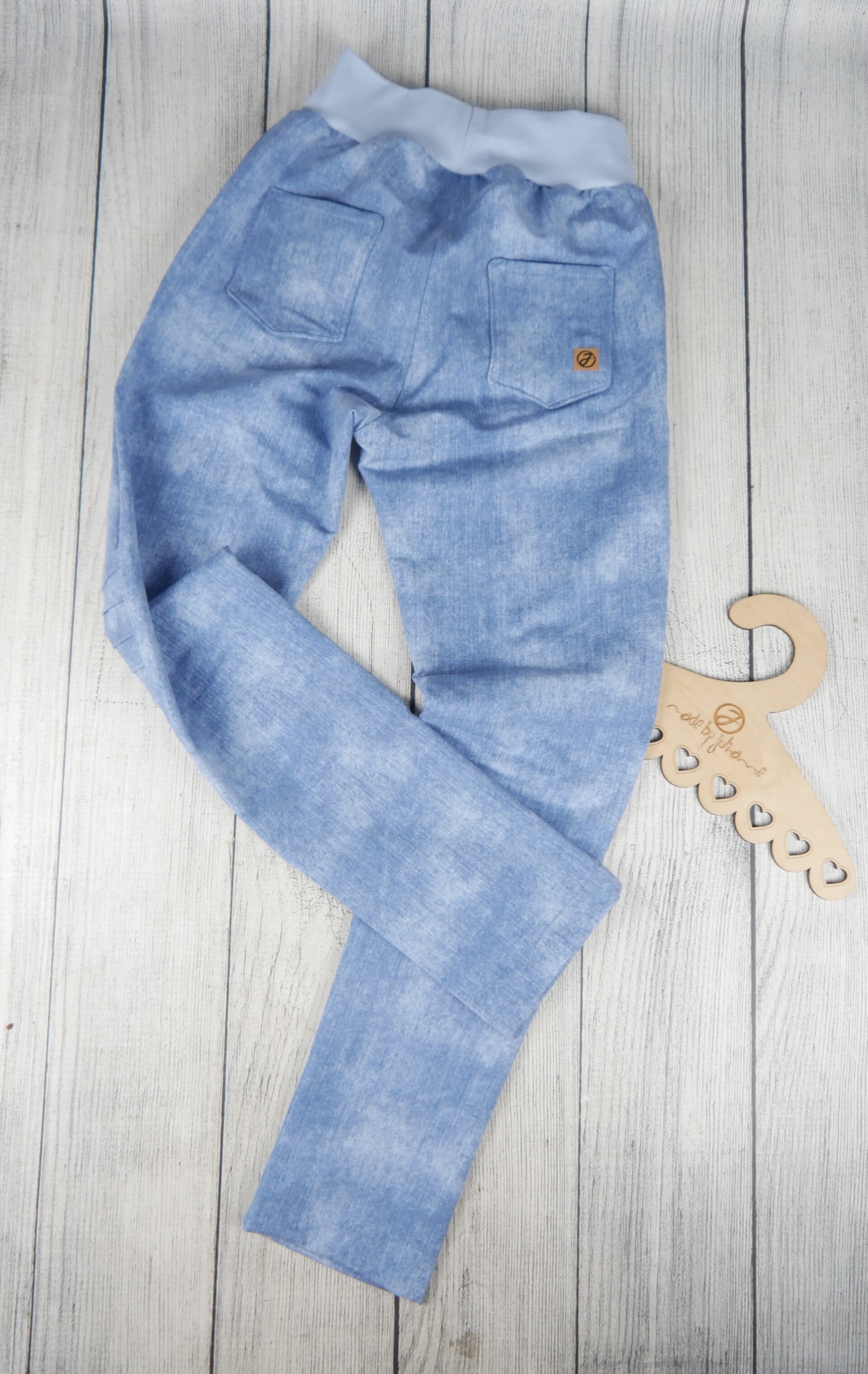 Hier nähe ich dir eine coole Leggings im Jeans Look mit Biesen an den Knien. Zusätzlich angebrachte Po-Taschen verstärken den Jeanslook und machen die Rückansicht noch ansehnlicher ;)