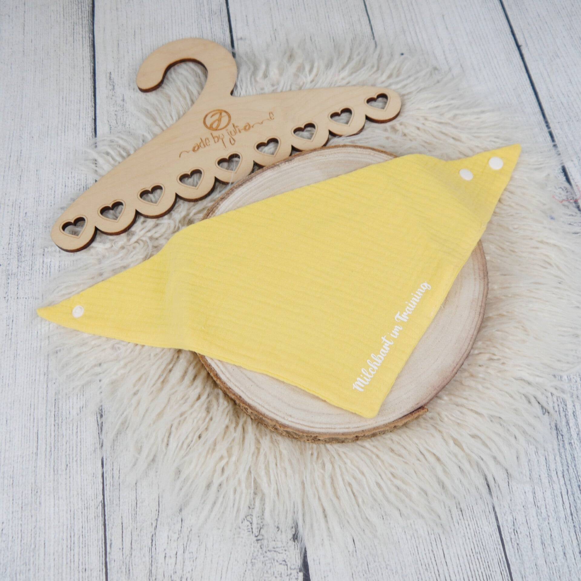 Die Halstücher bestehen aus 100 % Baumwolle (Musselin). Der Stoff ist schön weich, leicht und angenehm zur empfindlichen Babyhaut. Durch die verstellbaren Druckknöpfe können die Tücher in der Größe angepasst werden und wachsen so ein Stück weit mit.