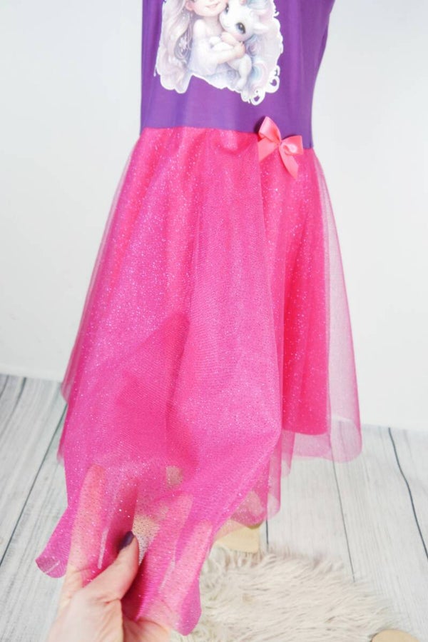 Drehkleid - Einhorn Mädchen Lila Pink mit Glitzer Tüll
