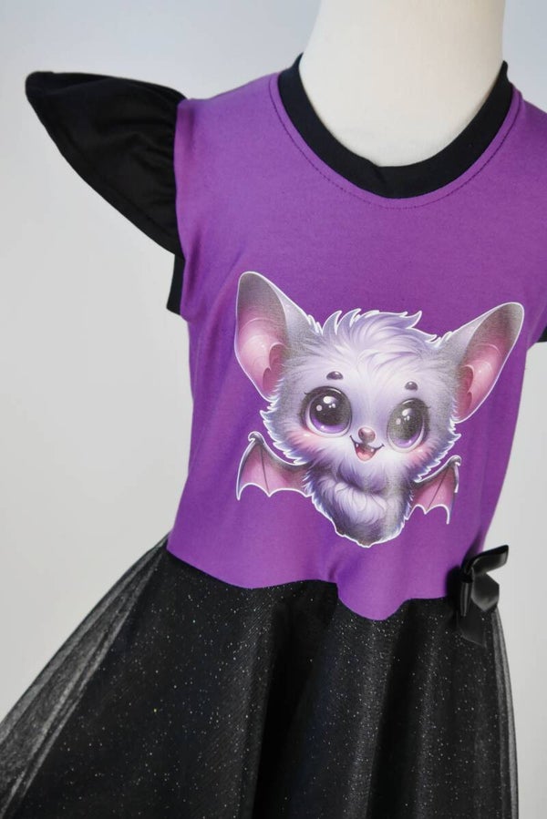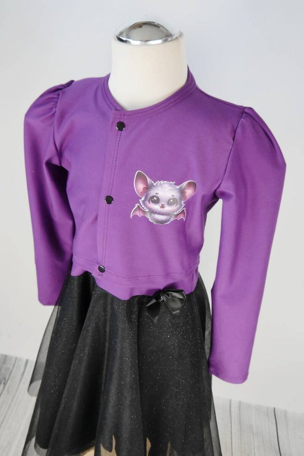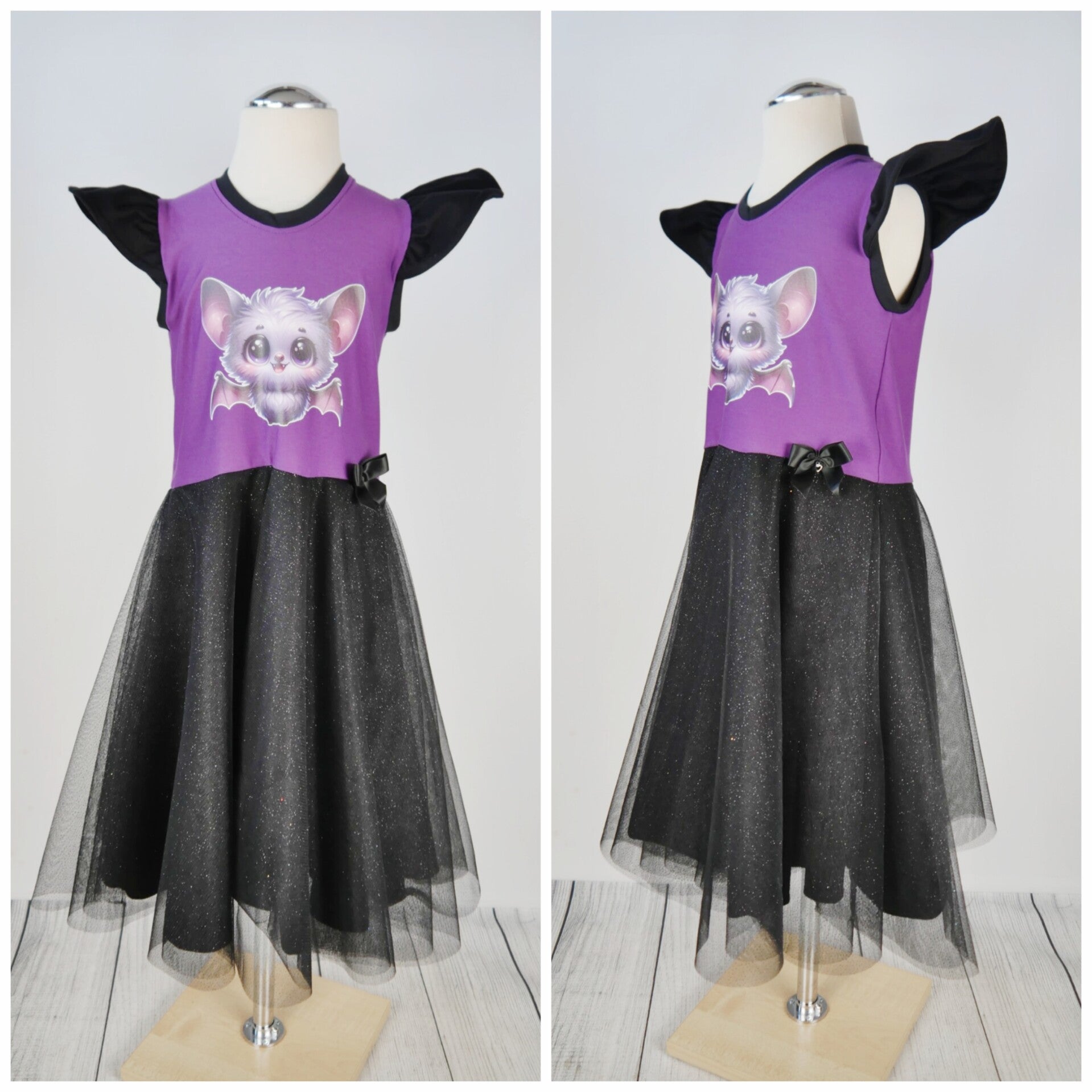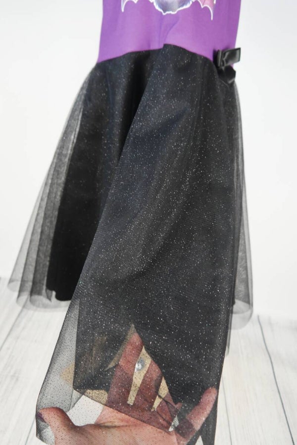 Drehkleid - Fledermaus Lila schwarz mit Glitzer Tüll