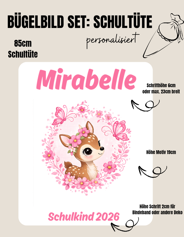 Set für Schultüte *personalisiert* REH BLUMENKRANZ