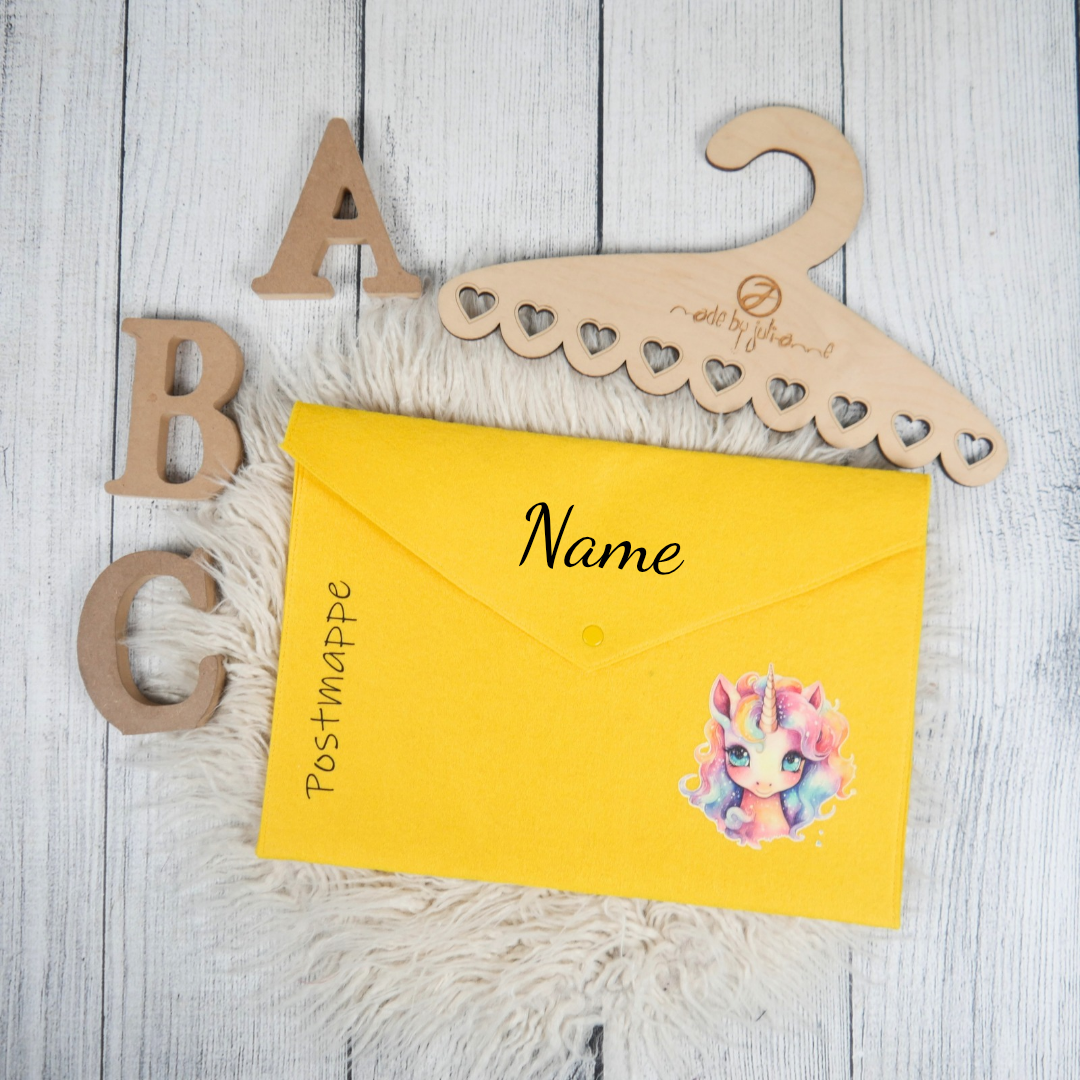 POSTMAPPE GELB - Aquarell Einhorn - personalisiert