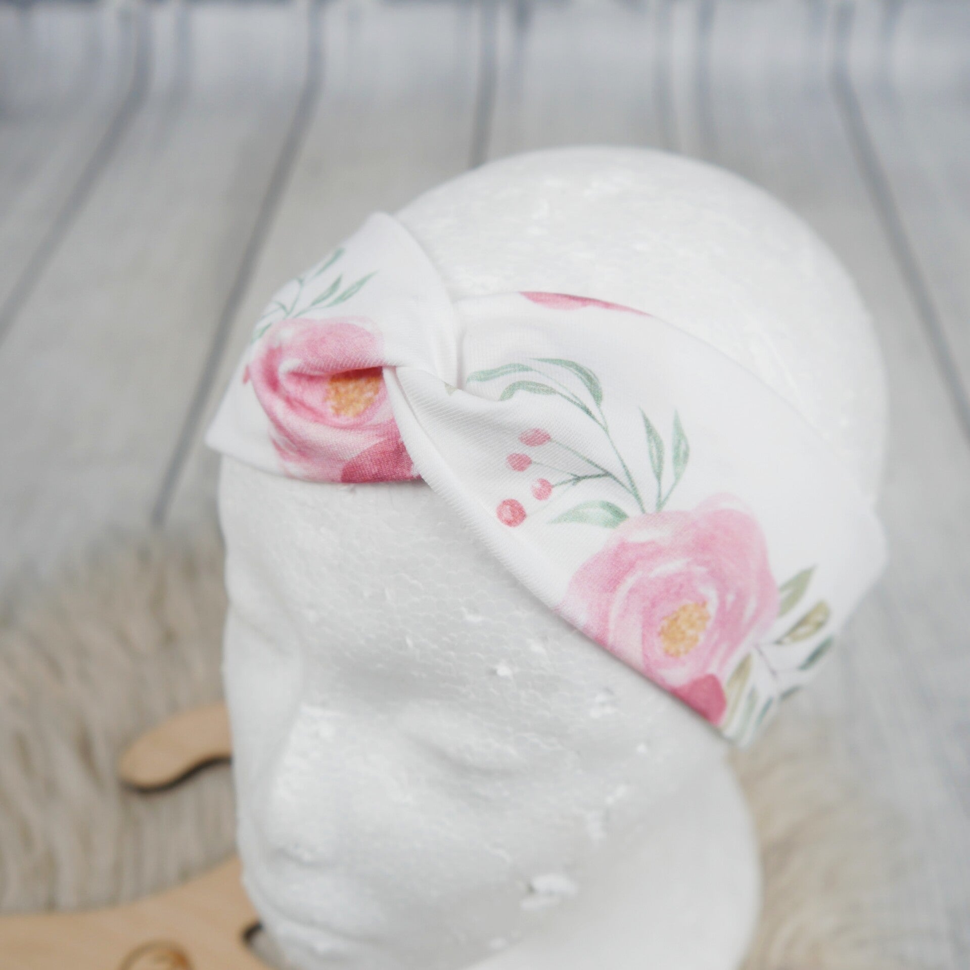 KU 54-57 Bandeau Haarband - Rosen auf Weiß