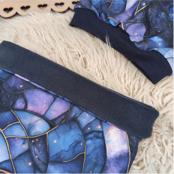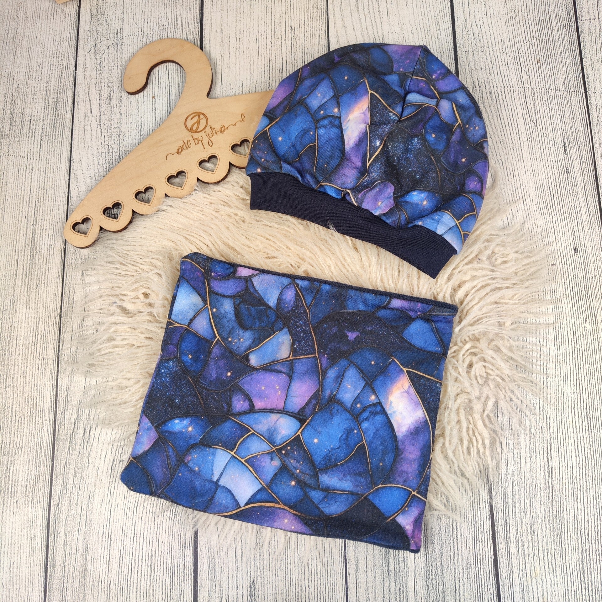 KU 56-57 Set: Beanie & Schlupfschal Lila Gold #gefüttert