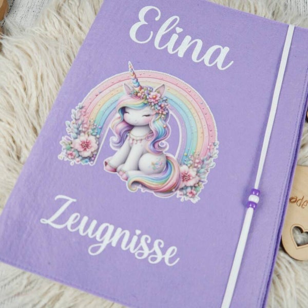 Zeugnismappe Rainbow unicorn Flieder