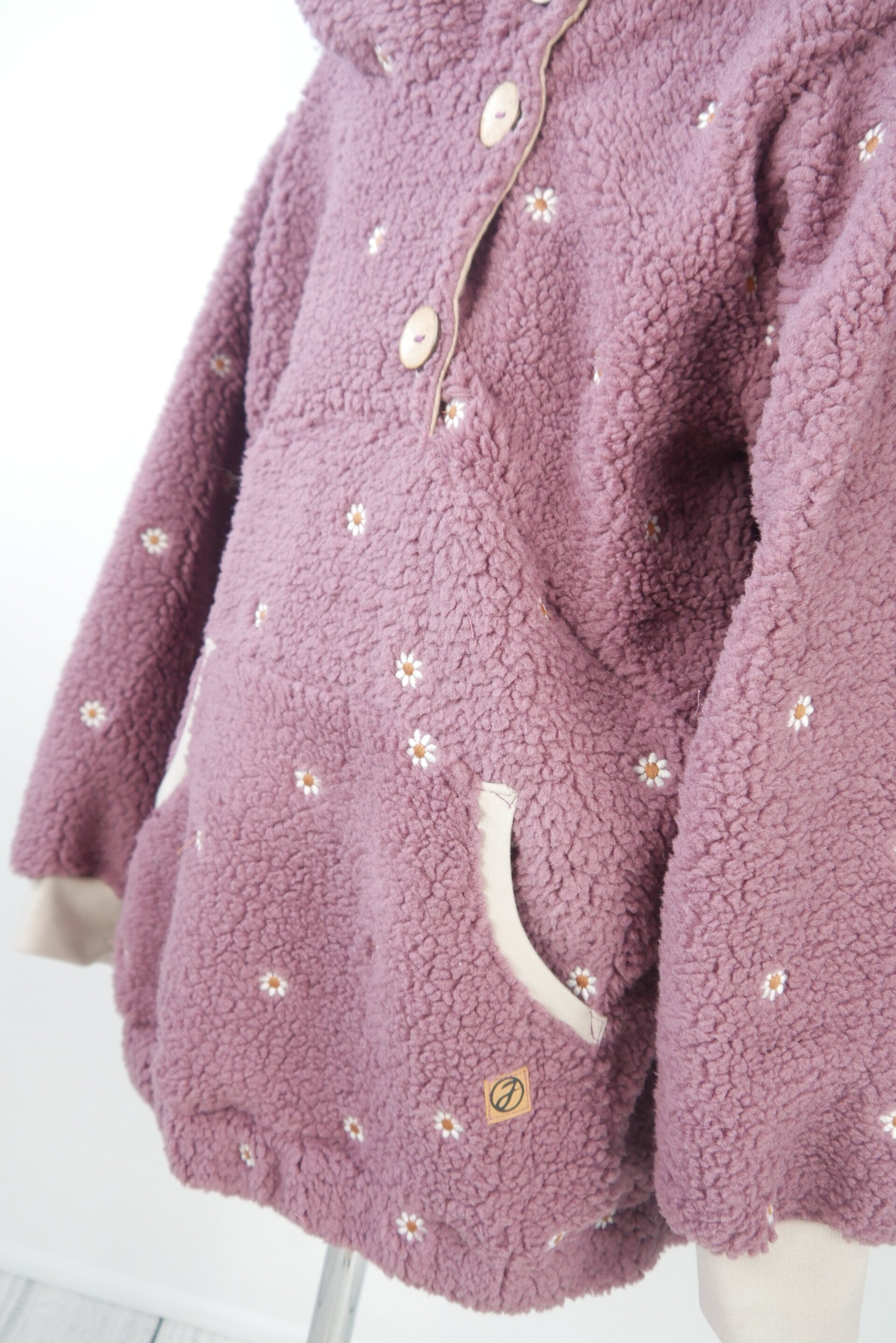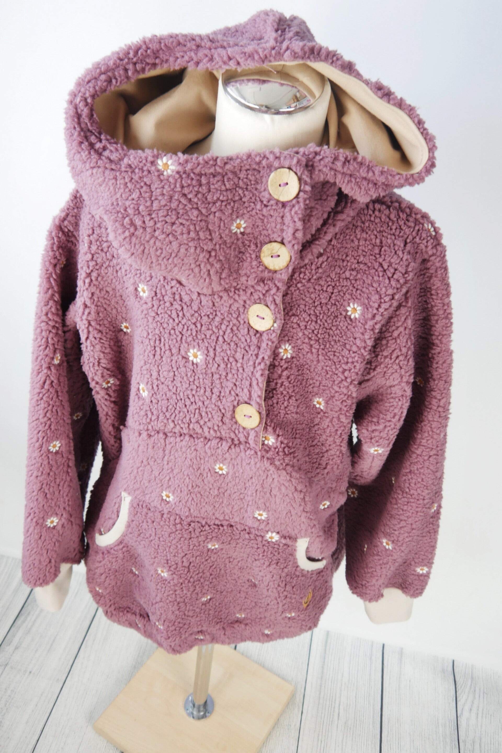 Anorak Kuschelteddystoff gestickte Blumen Altrosa