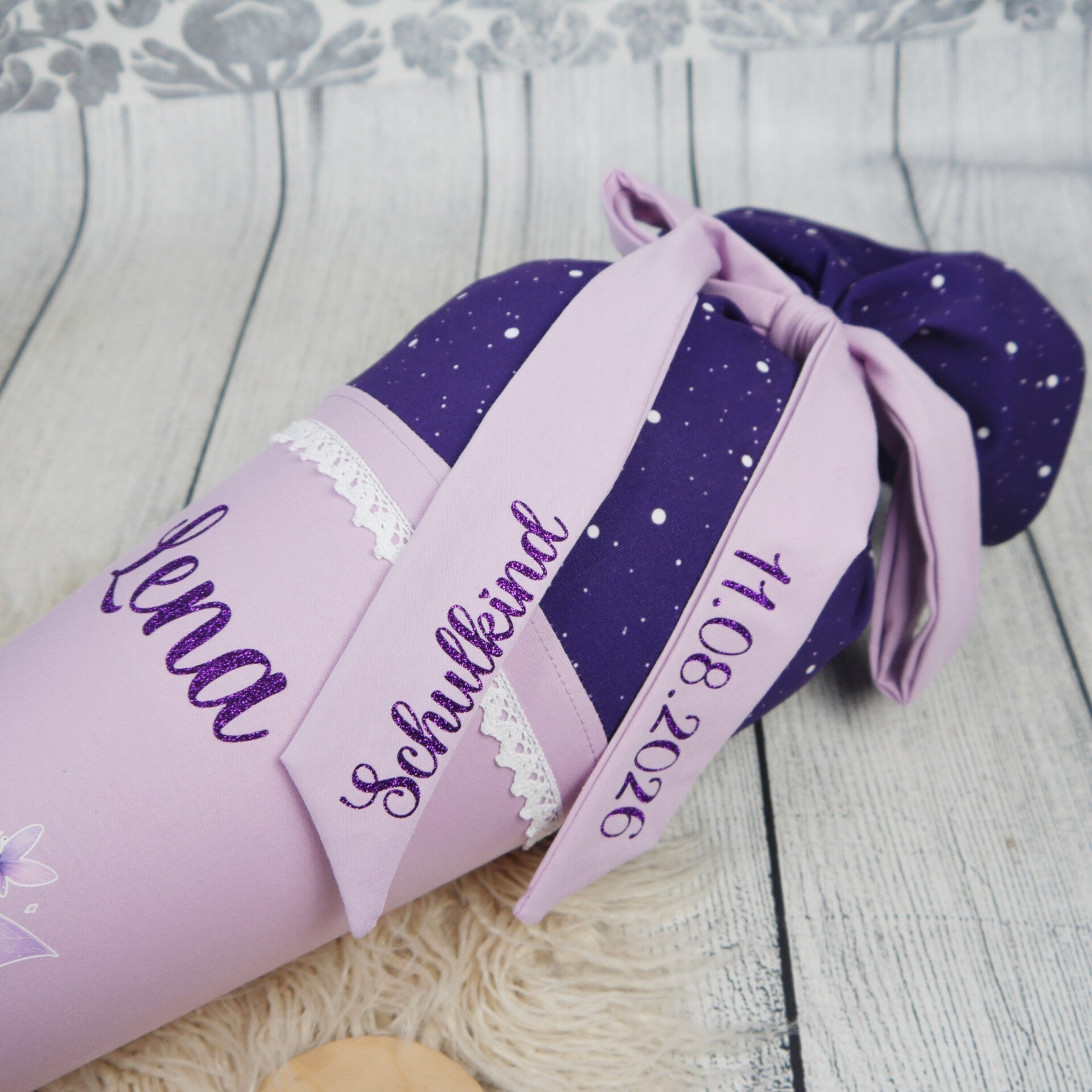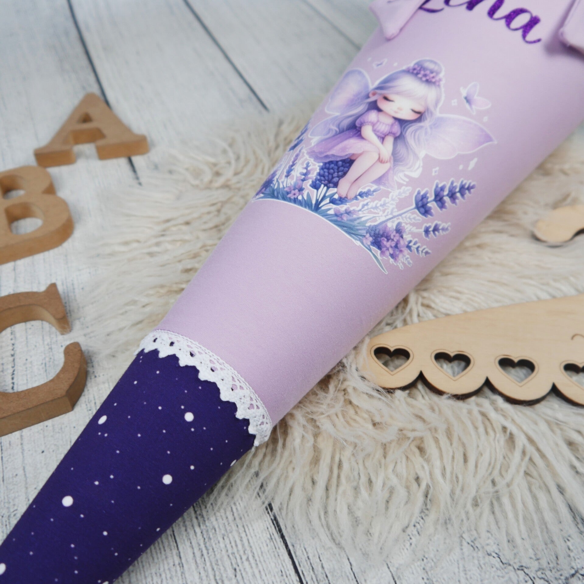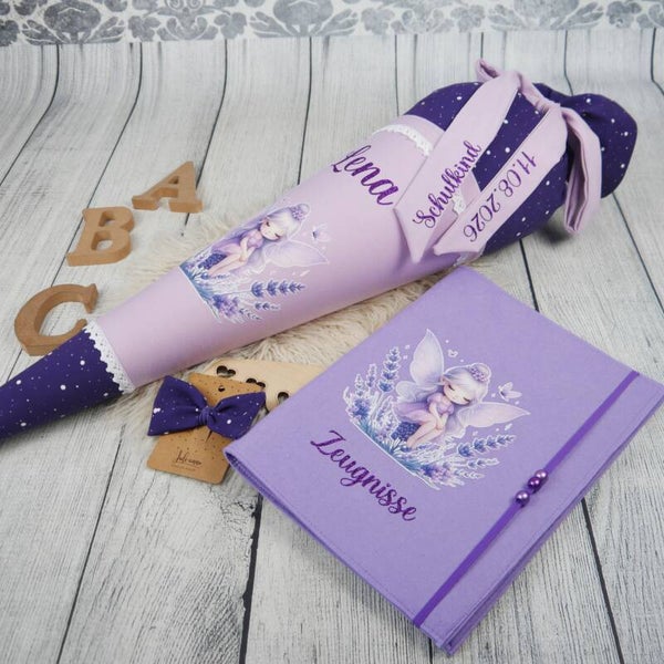 Schultüte Flieder Lavendelfee 70cm / 85cm / Geschwister passend zu Ergobag Sternguckbär