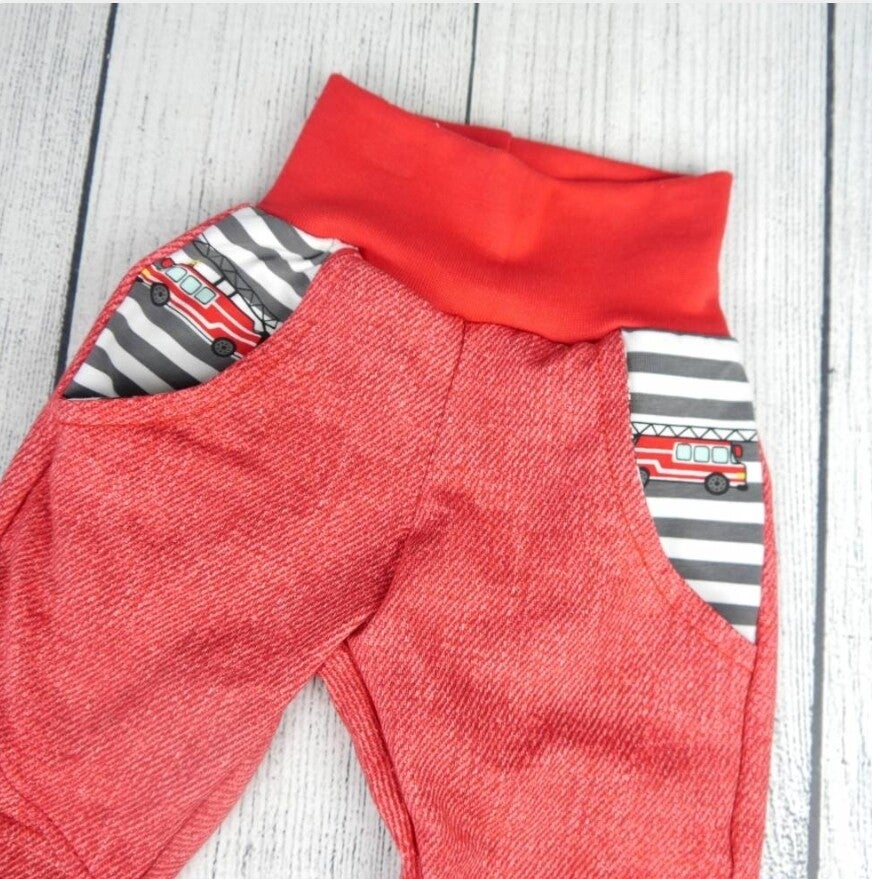 Diese Hose hat coole Biesen an den Knien und Po-Taschen / Taschen vorn aus einem Feuerwehr-Stoff.